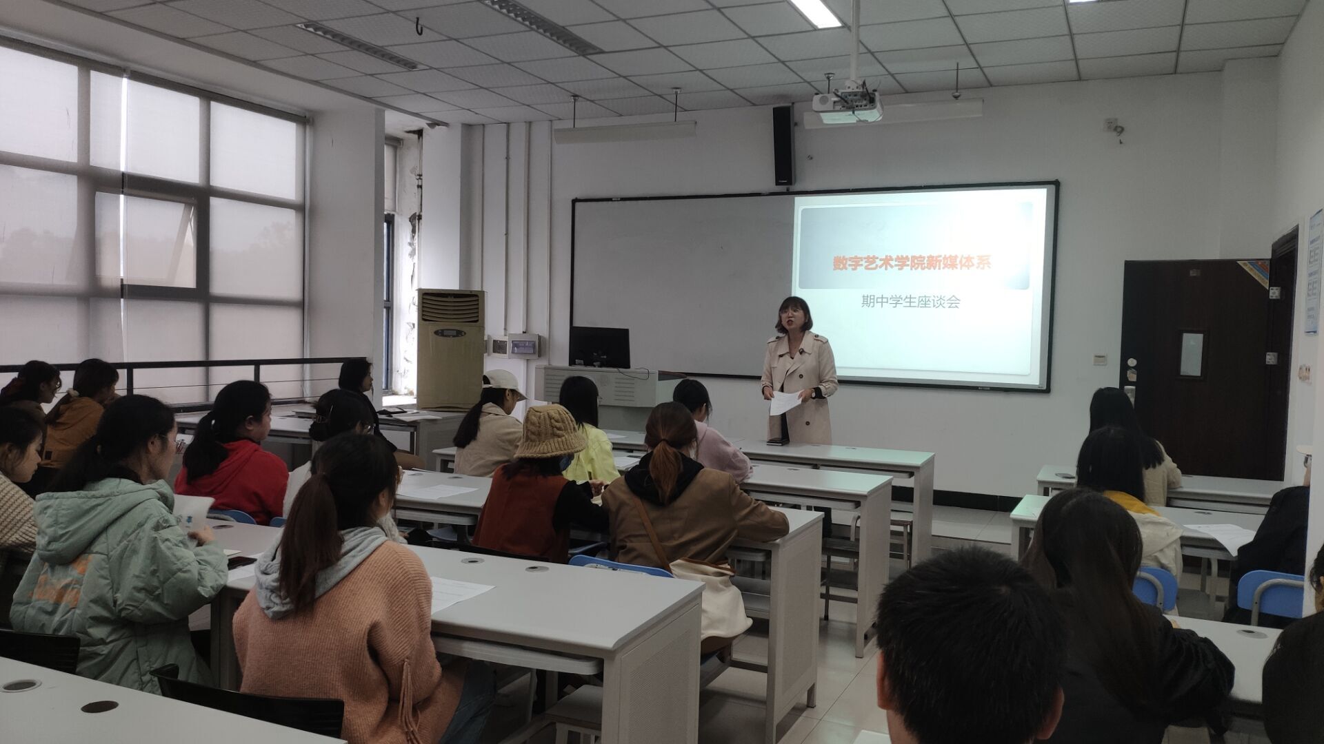2021年11月3日下午1点20分,数字艺术学院新媒体系在5601教室组织开展了2021-2022-1学期学生座谈会主题交流活动,参会学生有南泉校区2019、2020级网络与新媒体专业11个班级,20余名学生代表。此次会议参会老师有系主任弋玮玮,系副主任杨明慧、院级督导张小玲、教研室主任李佳蔚四位老师。
