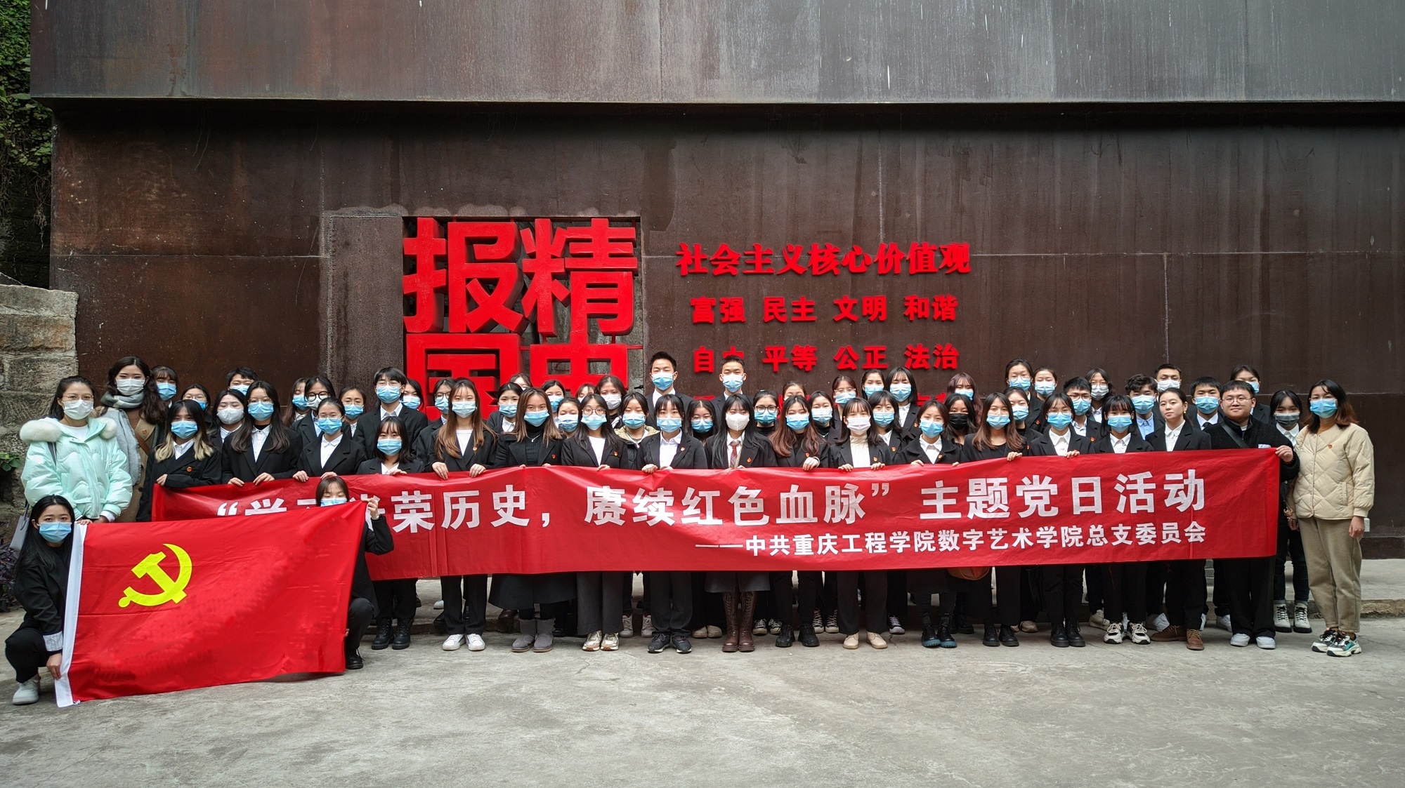 为进一步推动党史学习教育走深走实,更深刻了解中国共产党团结带领全国各族人民披荆斩棘、砥砺奋进、实现国家繁荣昌盛与人民富裕安康的百年历史。2021年12月9日下午,数字艺术学院全体学生党员前往了位于九龙坡区鹅公岩大桥下的重庆建川博物馆开展“学习光荣历史,赓续红色血脉”主题党日活动。