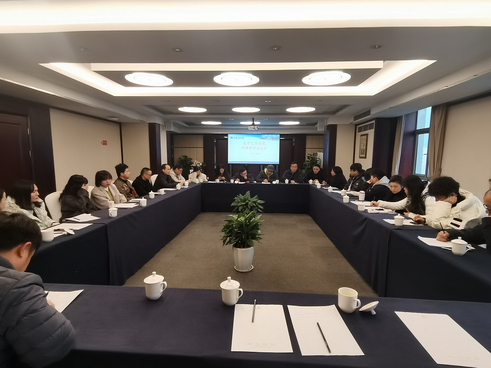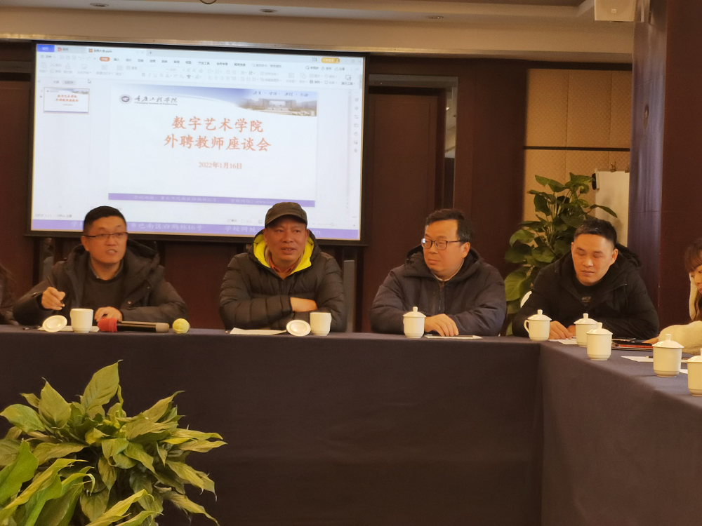 2022年1月16日,数字艺术学院召开外聘教师座谈会。学院领导班子、各系主任、办公室主任、教务科成员和担任授课任务的外聘教师参加本次会议,会议由副院长庄涛文主持。