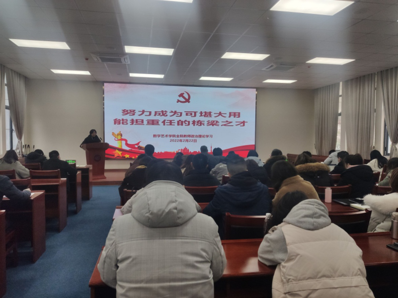 2022年2月22日,数字艺术学院党总支在办公楼第四会议室开展了以努力成为可堪大用能担重任的栋梁之才为主题的教职工集中政治理论学习。本次学习由数字艺术学院党总支书记徐小辉同志主讲,全体教职工参会。