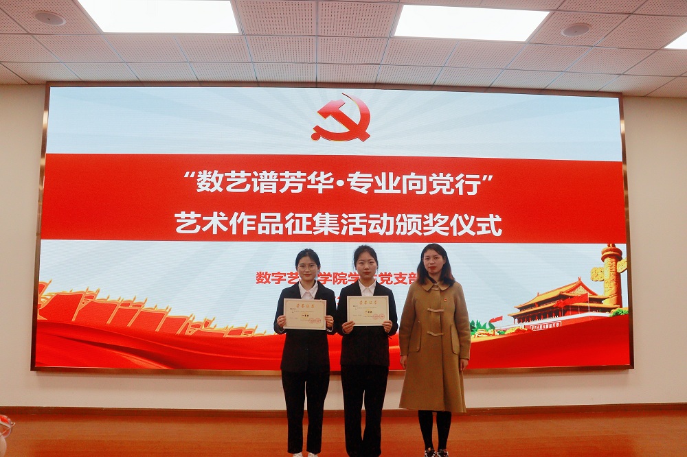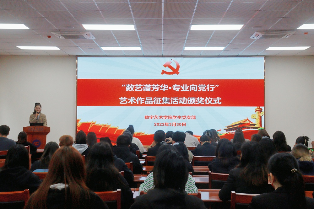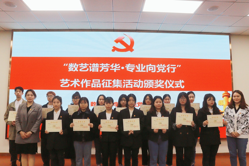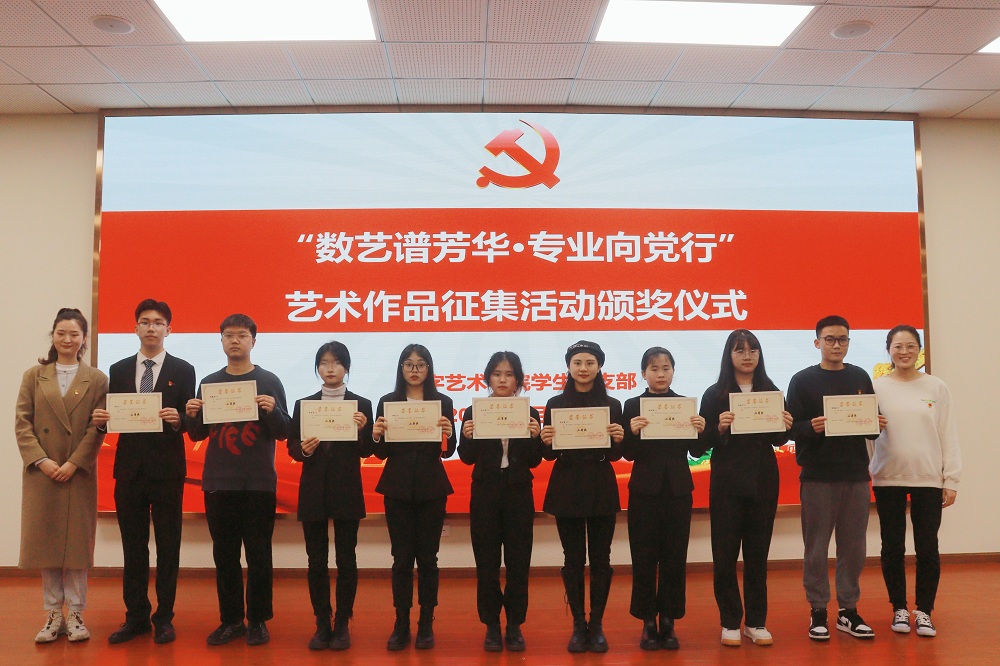 经群众投票及专业评议,本次活动最终产生一等奖作品2幅、二等奖12幅、三等奖18幅。于2022年3月30日星中午13:30在办公楼第四会议室举办“数艺谱芳华•专业向党行”艺术作品征集活动颁奖仪式。学院专职组织员、学生党支部书记、组织委员、专业教师代表出席,获奖同学及各阶段党性分子代表参会。