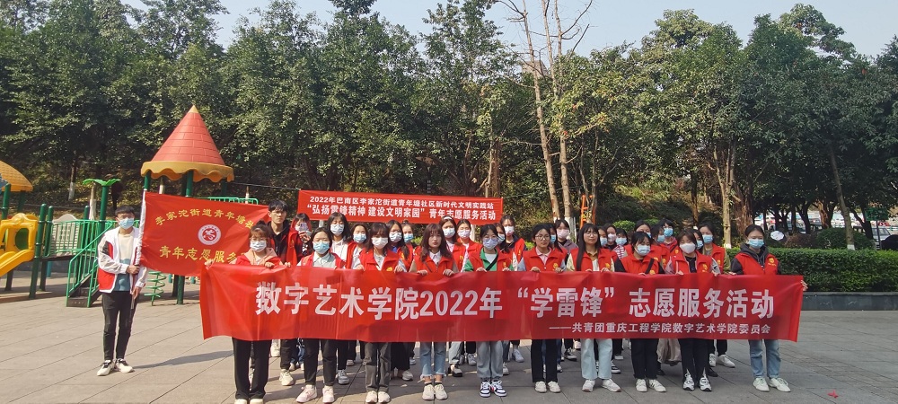 为贯彻落实党的关于“深入开展学雷锋活动,采取措施推动学习活动常态化”的精神,大力弘扬和传承雷锋精神,推进社会主义核心价值观体系建设,促进精神文明建设,2022年3月9日下午14时,数字艺术学院前往巴南区李家沱街道青年塘社区举行“弘扬雷锋精神,砥砺奋斗青春”志愿实践活动。