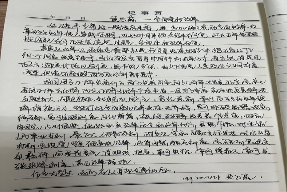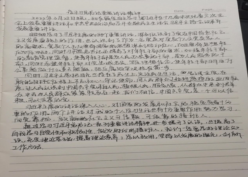 活动期间,同学们积极参与学习宣传贯彻习近平总书记重要讲话精神,同学们通过学习写下读后感,让同学们将重要讲话精神入脑入心入行,学思践悟、知行合一;知道要坚持以习近平新时代中国特色社会主义思想为指导,切实体会作为新时代接班人的责任感和历史使命感,坚定政治方向、锐意改革创新、扎实履职尽责,把习近平总书记的重要论述和重要讲话精神不折不扣的理解到心中;最后,同学们认为两个重要讲话对我们个人的学习生活也有十分重要作用,努力学习,向党靠拢,做社会主义可信赖,可依靠的接班人,一定要学好理论知识,充实理论基础,提高理论素养,学以致用,坚持以发展的眼光,创新工作方法。