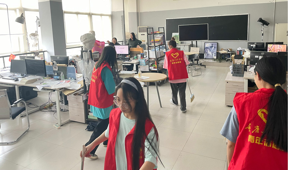 志愿者们分工明确,以小组为单位,有的打扫公共活动空间、有的打扫会议室,有的打扫仓库等不同区域。在活动中,同学们充分发挥不怕累、不怕脏的精神,积极打扫,按照“五净一整齐”的要求,认真对办公室、会议室等的卫生死角进行全面打扫,对办公桌椅以及书刊资料等办公物品进行归类整理,将清扫出的垃圾进行妥当处置。活动中,同学们热情高涨,干劲十足,大家忙得不亦乐乎,半天功夫,各区域就窗明几净,焕然一新。此次活动获得同学们和老师们的高度认可,同学们都说自己做了一个十分有意义的事。