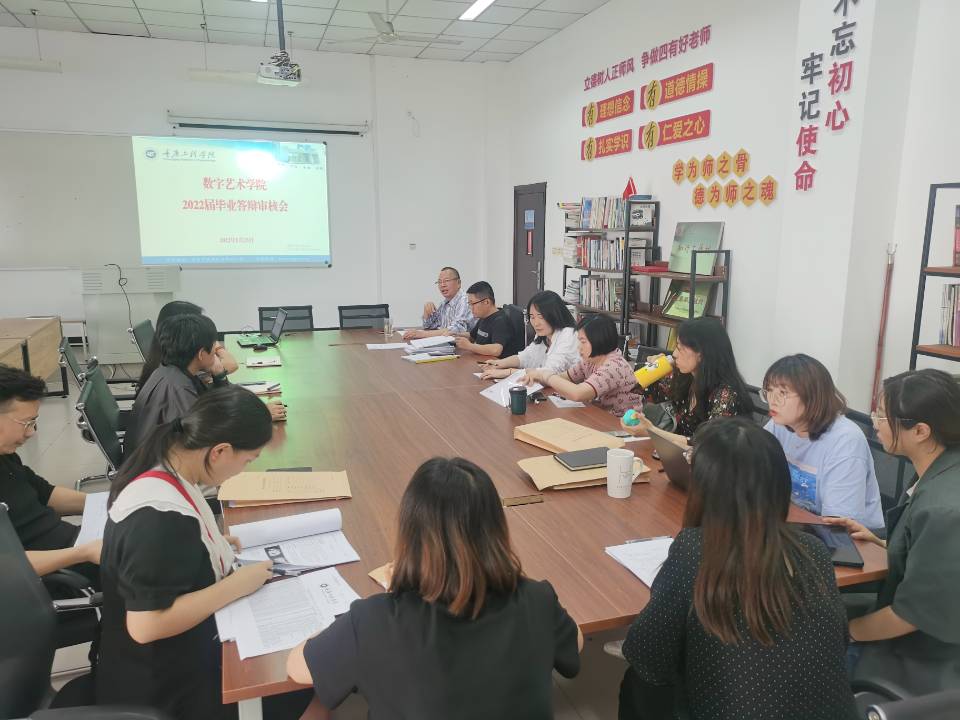 2022年5月23日,数字艺术学院在5207会议室召开2022届本科学生毕业答辩审定会。院长杨开富,副院长庄涛文、杨飞,以及学术委员会成员和各答辩小组组长参加了本次会议。