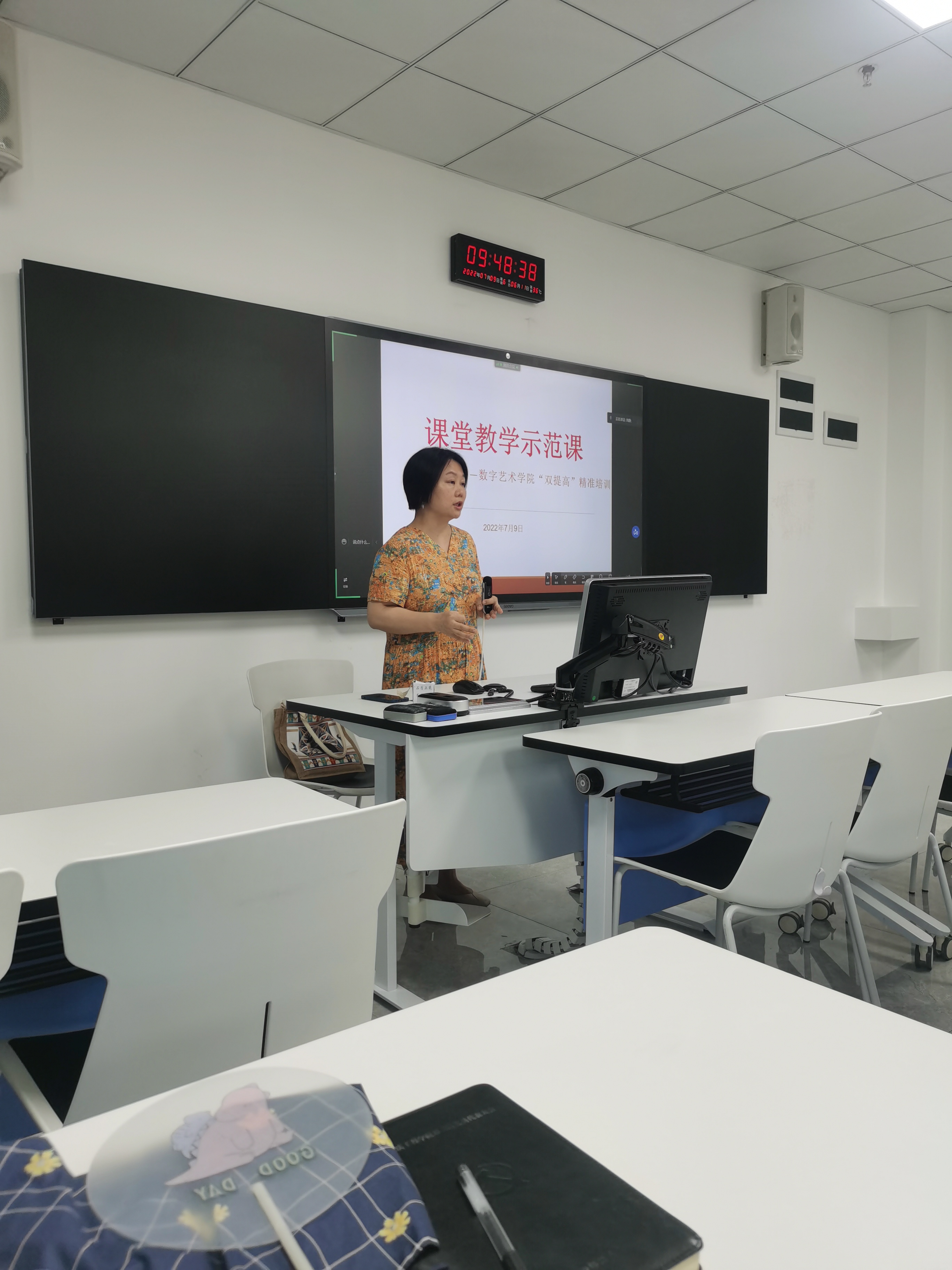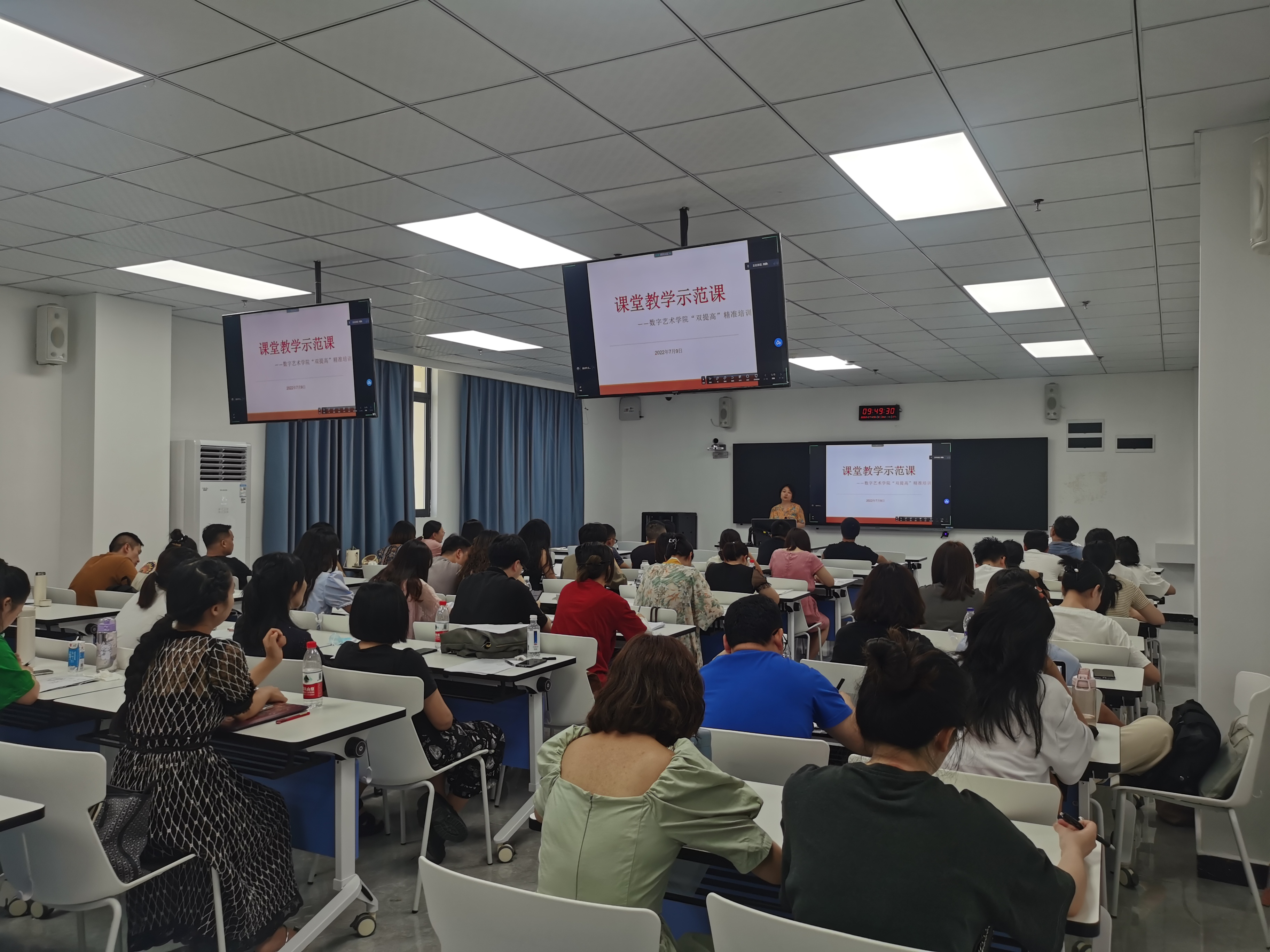 2022年7月9日,数字艺术学院在七教1201活动室邀请到重庆工商大学文学与新闻学院副教授张玉霞进行了课堂教学示范课讲授活动。院长杨开富、教学副院长庄涛文、科研副院长杨飞以及全体一线教师参加了此次活动。