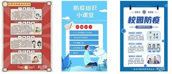 这是一组以防疫知识宣传为主的作品。同学们对防疫相关内容进行收集整理,通过自己的创作想法,以一种简明扼要的形式呈现出来。