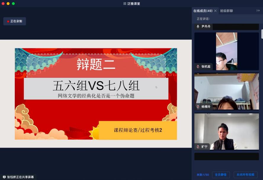 此次《网络文学》课程辩论赛不仅让学生们对《网络文学》这一门课程有着更深的理解,沉浸式思考网络文学这一新兴文学体系外;还展示了学生们在辩论场上的非凡风采,锻炼了大学生的辩论能力和合作能力,提高了同学们的思维反应速度和沟通技巧,营造出了良好的学术氛围。
