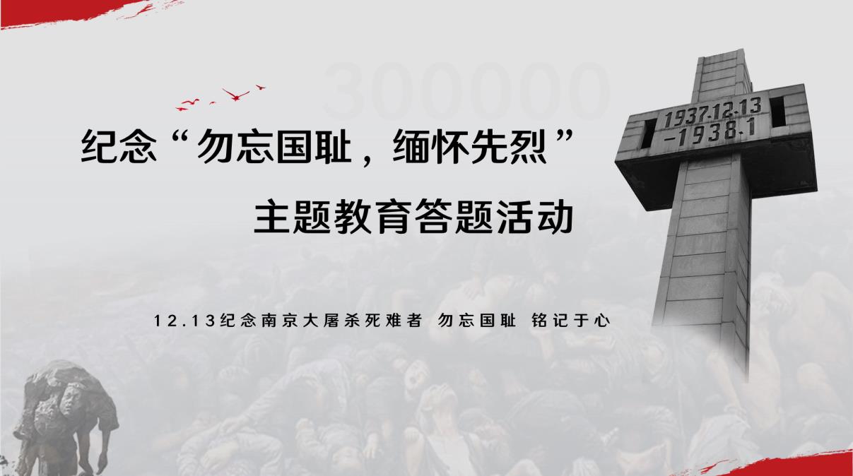 本次活动以线上答题形式开展,活动中不少同学在答题过程中获得满分的佳绩。本次活动以“勿忘国耻,缅怀先烈”主题教育答题活动为契机,使学院青年学子提高对南京大屠杀的了解,唤起青年学子对历史的记忆,培养学生的爱国主义精神和伟大抗战精神,进一步提高同学们的政治意识。