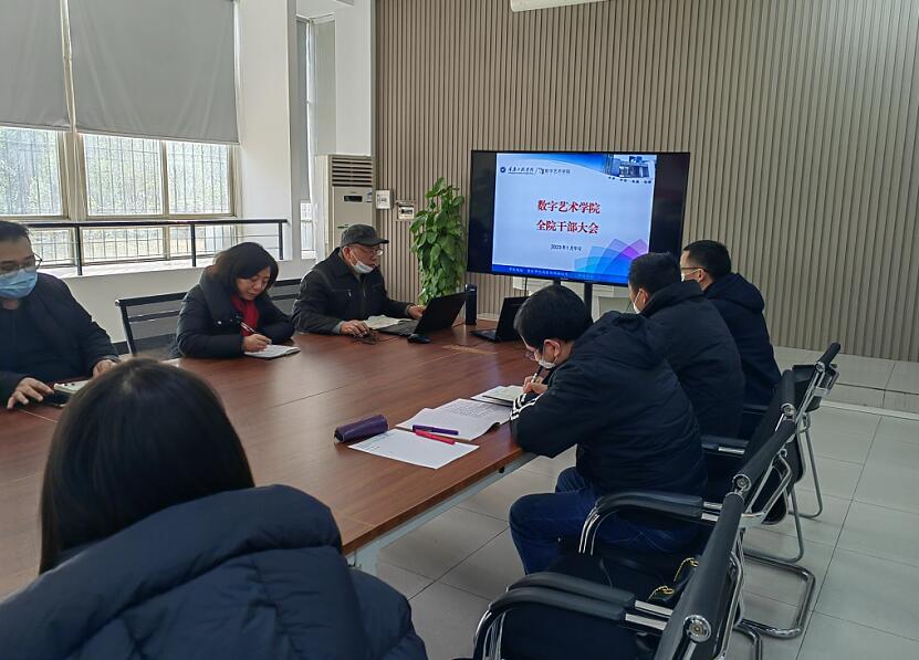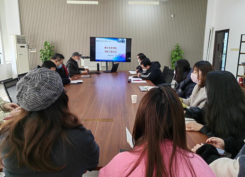 本网讯(文/图 数字艺术学院 张耀方)2023年1月9日,数字艺术学院在5207会议室召开全院干部大会,本次会议由杨开富院长主持,学院党总支书记徐小辉、副院长庄涛文、副院长杨飞出席,各科、系、室负责人,教研室主任参会。