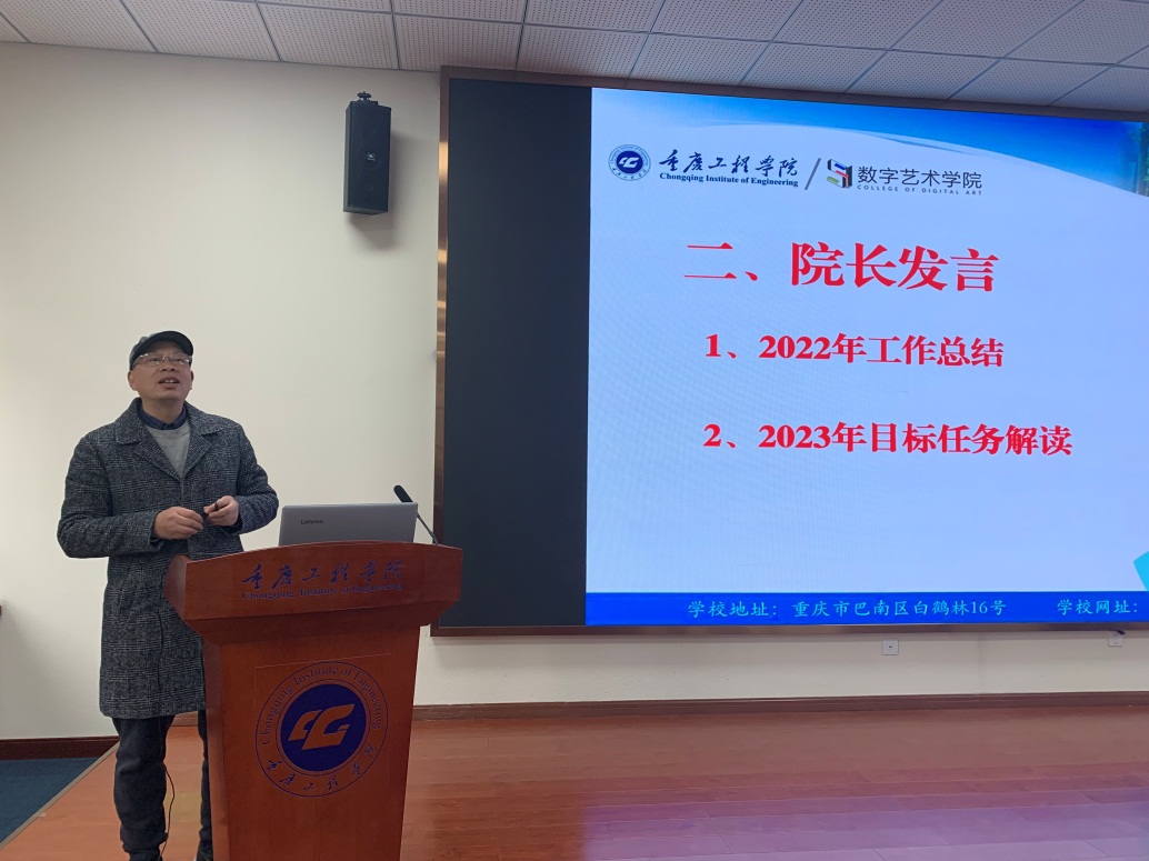 会议第三项,院长杨开富对2022年的工作进行总结,尤其是针对学院考核结果中扣分比较多的部分进行了深刻的剖析,希望大家对以前存在的问题引以为戒。随后,杨院长对学院2023年的目标任务书进行了详细、全面的解读,并对2023年的人才培养方案制定、合格评估、就业等七项重点工作和就业质量、师资队伍等难点工作进行了明确,希望大家团结奋进,突破重难点,再创新辉煌。