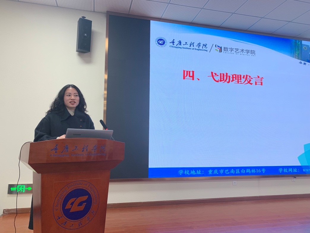 本网讯(文/张耀方 图/李毅)2023年2月15日下午,数字艺术学院在行政楼第四会议室召开2023年新学期教职工大会。学校副校长王琼花和数字艺术学院全体教职工参加会议, 会议由学院党总支书记徐小辉同志主持。