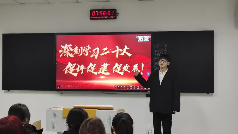 本网讯(文/贺靖杰 图/欧阳雪慧) 3月2日,数字艺术学院 “超燃党课”宣讲团在第六教学楼307、308教室开展二十大精神进晨课系列活动。