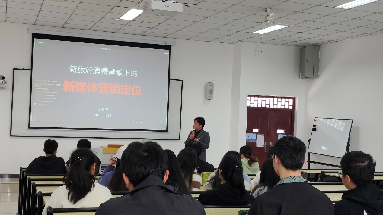 重庆市归初文旅发展有限公司致力于复合型文旅项目的规划,专注于文旅项目的研究、策划、规划、咨询、顾问、推广为一体的全方位服务机构。公司自创立以来,为重庆、四川、甘肃、宁夏、贵州等地服务近百个项目。辛瑞国先生具有丰富的一线从业经验和扎实的实战功底。他就新时代背景下旅游构成要素、消费背景、打造网红景区、场景化特征、新媒体营销定位、重庆的旅游发展情况进行了详细讲解。从数据分析到理论支撑再到实战案例的应用,由浅入深,娓娓道来,向同学们详细地指导。