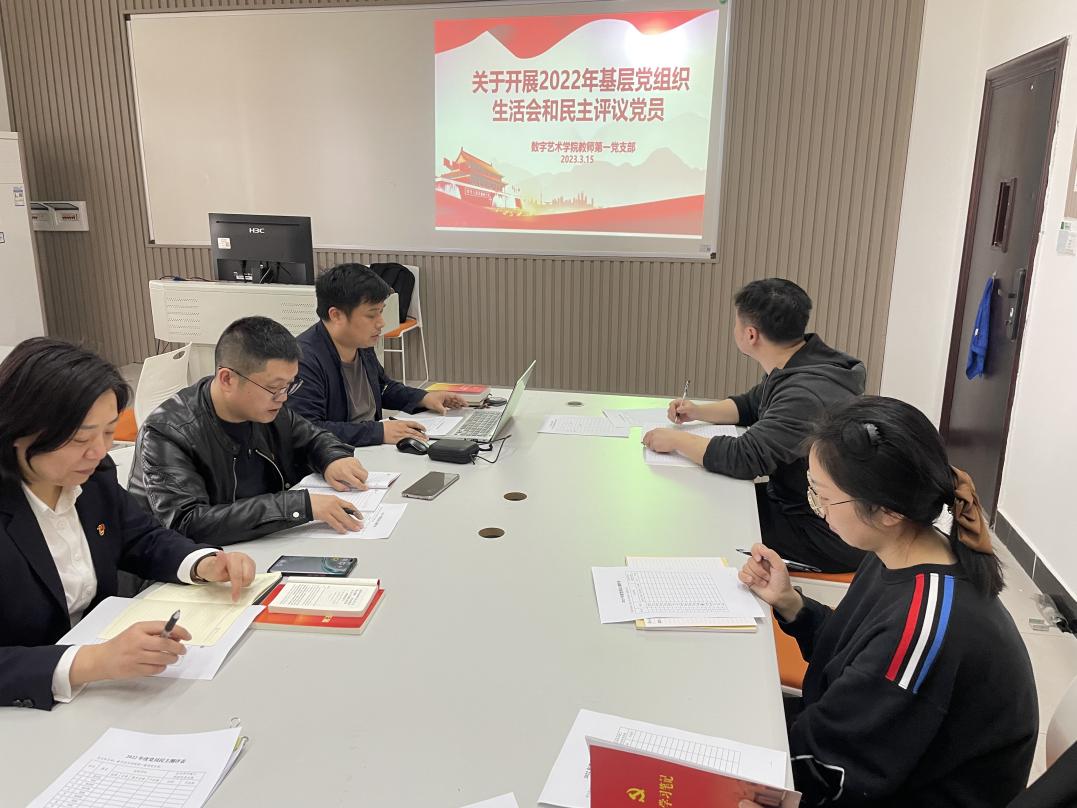 本网讯(图/文 党支部宣传委员李旗) 3月15日下午,数字艺术学院教师第一党支部在5205教室召开组织生活会和民主评议党员活动。教师第一党支部全体党员参加会议。