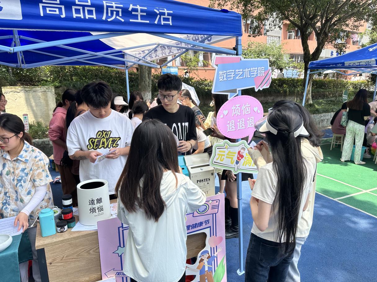 本网讯(文/张雪银 图/张怡)为增进大学生对心理健康的关注,倡导大学生关爱自我的心理成长和健康,5月24日,数字艺术学院在一教篮球场开展了“5·25——为爱赋能,拥抱幸福”大学生心理健康文化节系列活动。