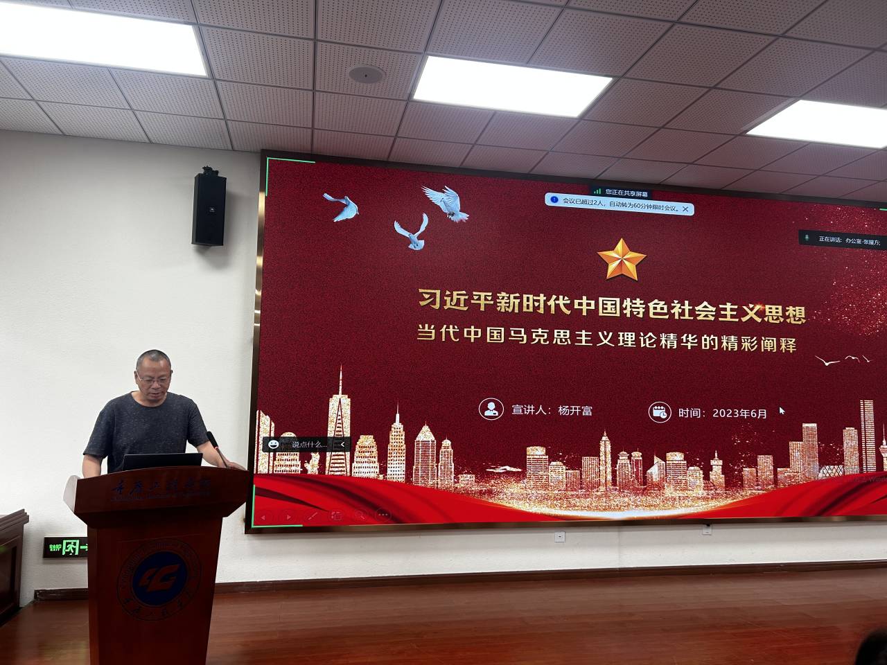 本网讯(文/图 综合办公室李毅)2023628日下午,我院开展专题党课学习,学院院长、党总支副书记杨开富主讲,全体教职工参加。