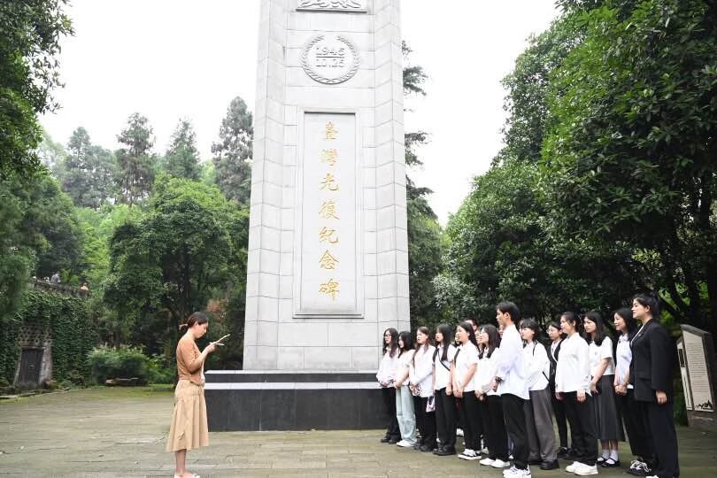 来到台湾光复纪念碑之前,进行活动第二项,新吸收预备党员集体宣誓,由王熙萌同志领誓,全体预备党员紧握右手,庄严宣誓。