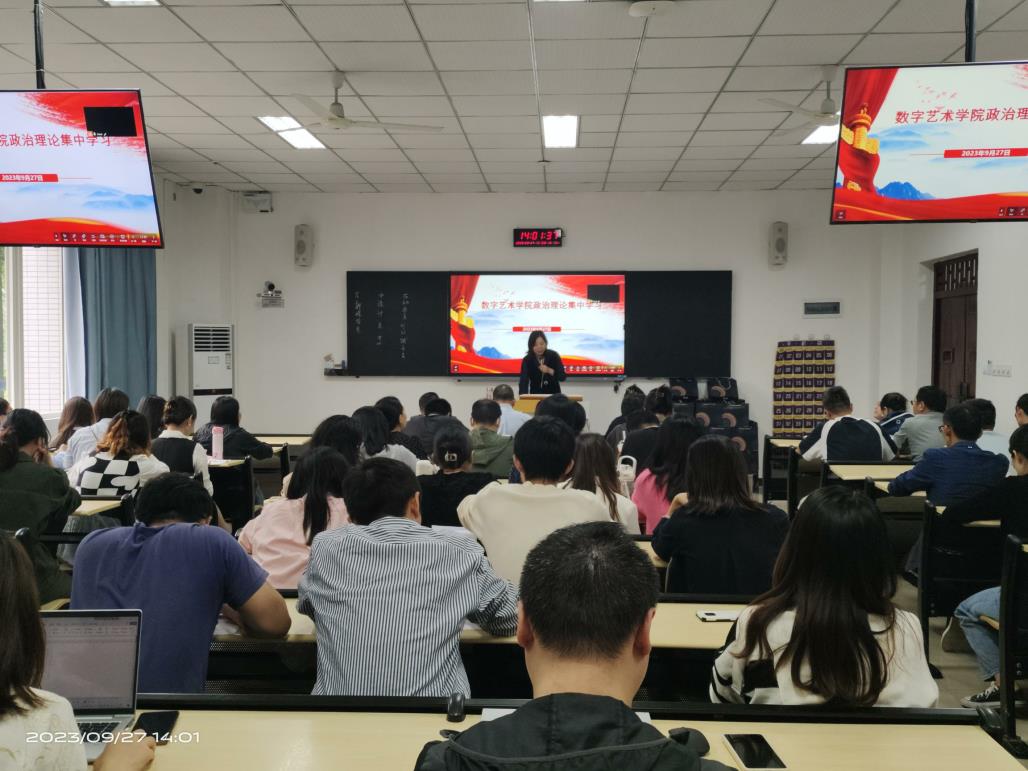 本网讯(文/图 综合办公室胡娟)2023年9月27日下午,数字艺术学院在六教117教室召开2023年第七次教职工大会。会议由学院办公室李毅主持,院长杨开富出席会议并发表重要讲话,学院全体教职工参加。