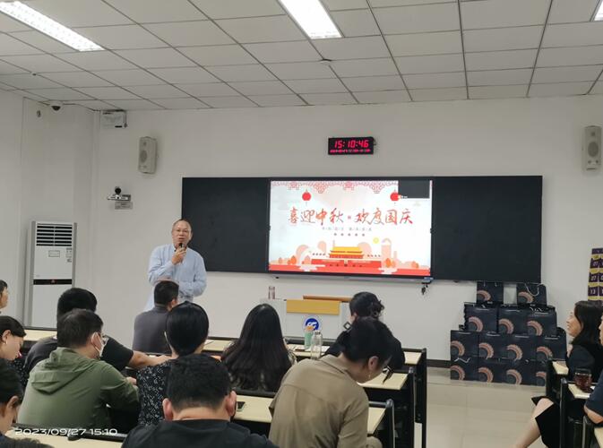 会议第五项,院长杨开富和党总支书记徐小辉为全院教职工送上了中秋国庆双节慰问品。院长杨开富送上了对全体教师的希望与祝福。他强调通过今天的会议大家统一了思想,凝聚了力量,希望大家都不忘初心,团结协作,以学院注册公司为契机,发扬主人翁精神,迸发干事创业的激情,集中大家的智慧,不断深化教学改革,实现我院跨越式的发展。祝各位老师中秋、国庆佳节,身体健康,阖家幸福。