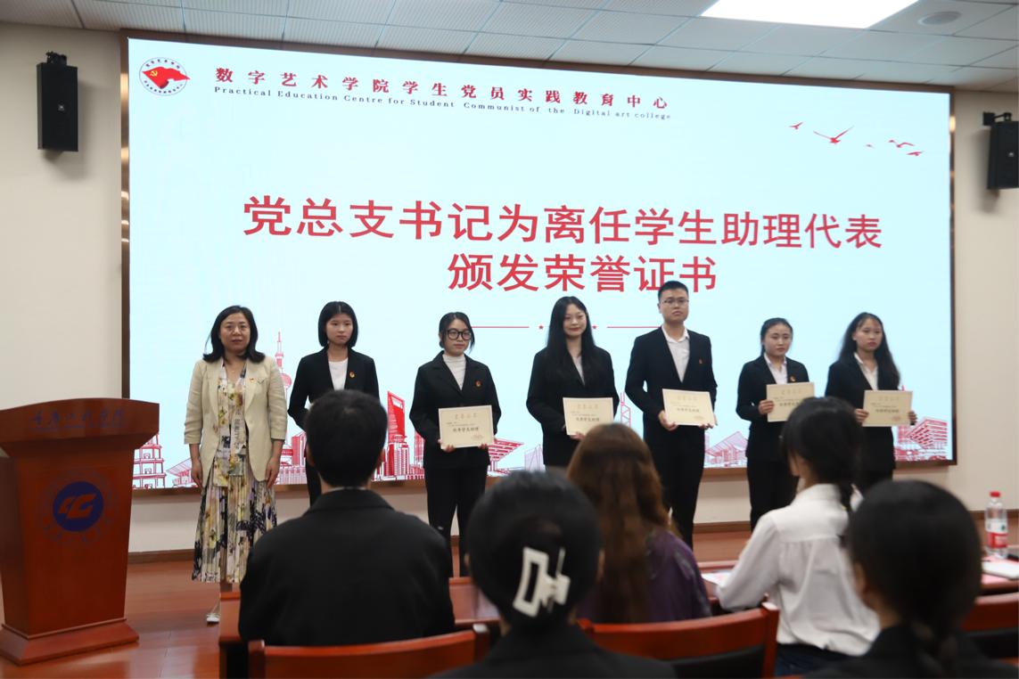 会上,学院党总支表彰了分中心第七届优秀学生助理,激励他们继续勇往直前。优秀学生助理代表马小龙交流发言,他分享了工作经验,希望新任助理发挥先锋模范作用,自觉为师生服务,在以后等工作中能学有所长。随后,学院党总支对第八届学生助理进行聘任,与会老师为他们颁发了聘书。分中心新任负责人贺靖杰发言,对未来分中心工作作出安排。新任学生助理代表黄位发言,并带领第八届学生助理进行宣誓,他们用誓言筑起心中的城墙,坚定为学院党建工作和学生党员实践教育的发展而不懈努力奋斗决心。