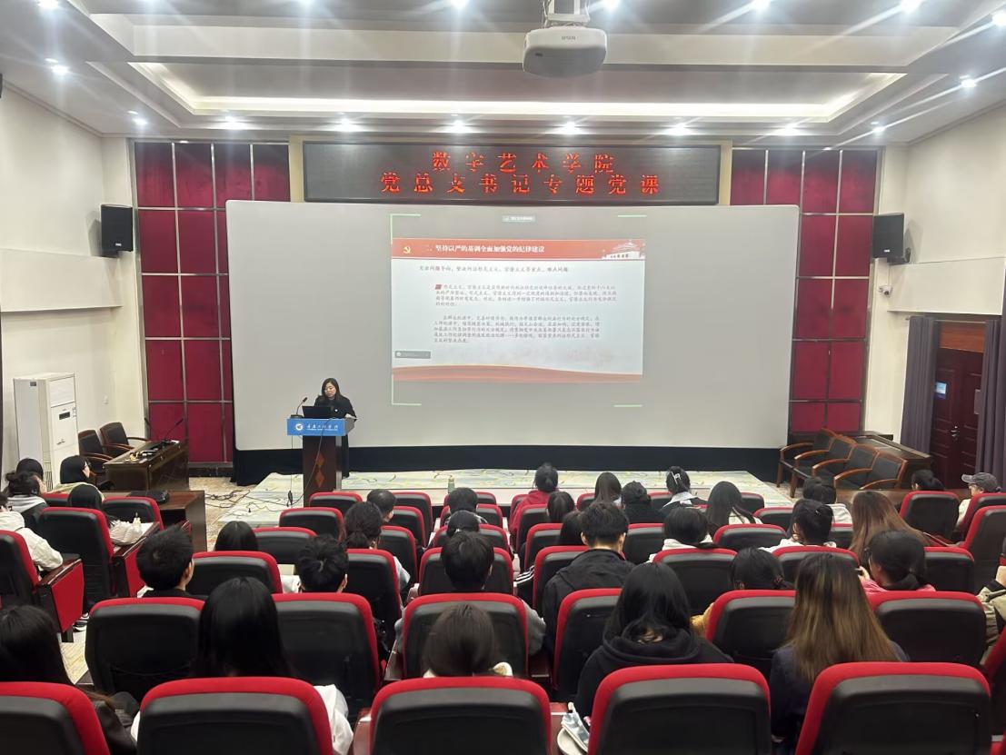 本网讯(文/刘璇 图/李毅)3月14日晚上,数字艺术学院党总支在办公楼报告厅开展专题党课,党课由党总支书记徐小辉主讲,学院140余名学生党性分子参加。