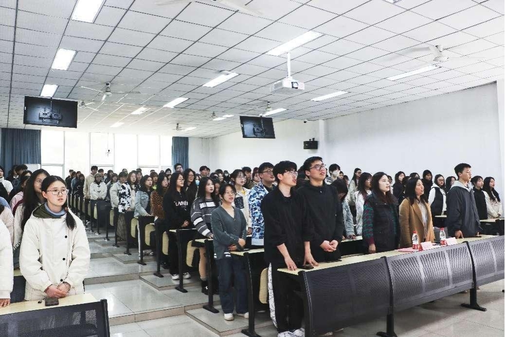 会议从整齐洪亮的国歌声开始,首先,由分团委书记杨道珍为大家解读了《数字艺术学院寝室文化建设工作实施方案》,提出寝室规范标准要求。其次,国旗护卫队优秀队员和2023—2024学年学霸示范寝室代表分别进行发言分享自己整洁寝室的可贵经验。最后,党总支书记徐小辉进行总结并补充几点寝室规范要求,呼吁大家一定要自觉维护好寝室整洁。