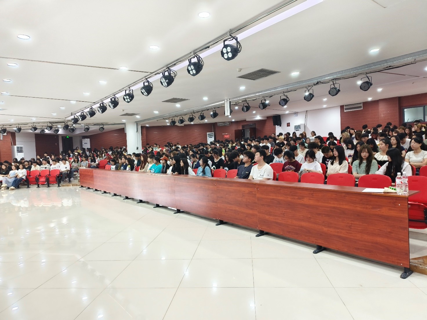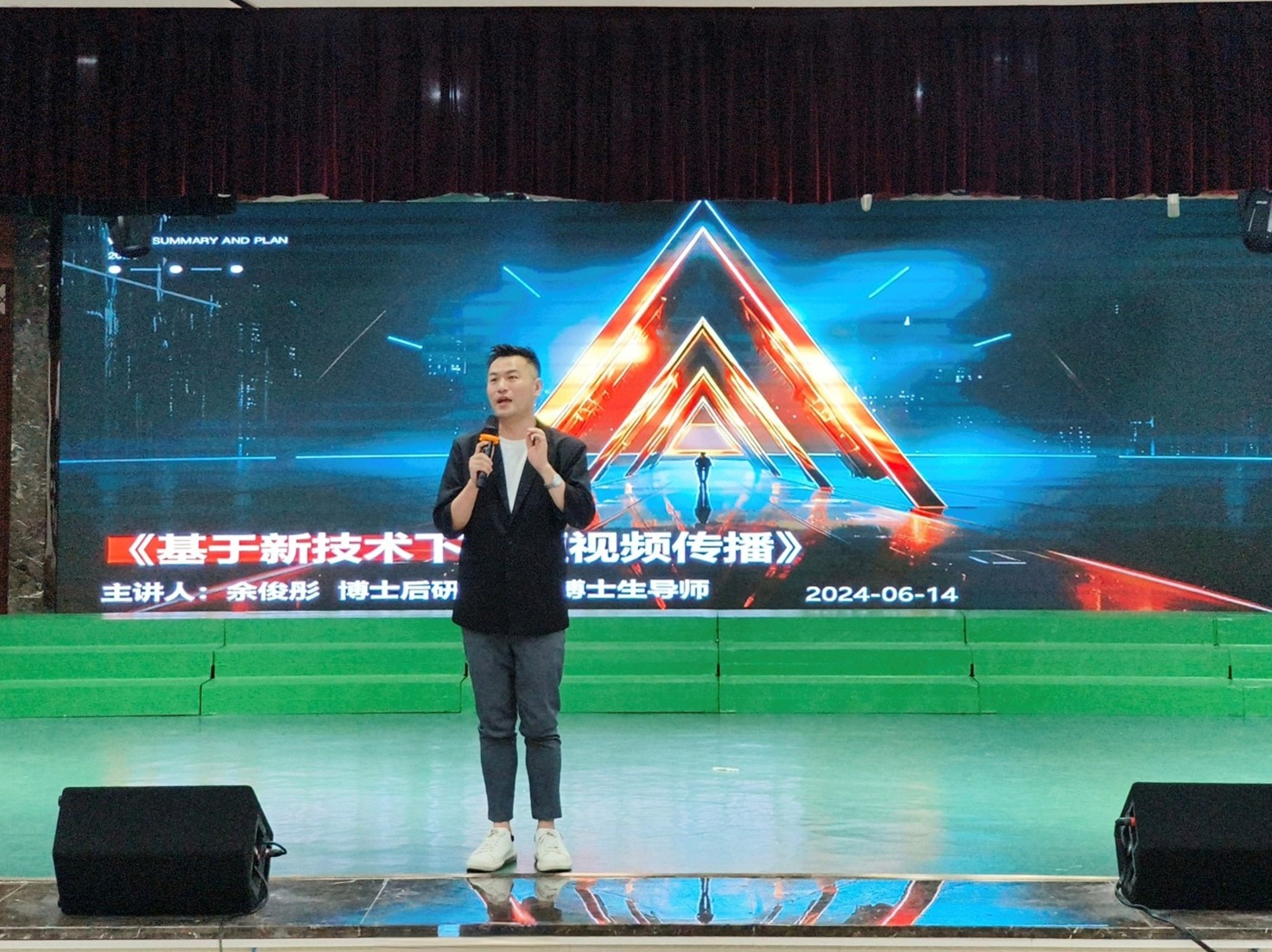 本网讯(文/图 陈小丽)6月14日下午,我院余俊彤博士莅临双桥校区,在报告厅开展了《基于新技术下的短视频传播》讲座,为同学们分享了新技术在短视频传播领域的应用。23级设计学类、动画、网络与新媒体三个专业约600名同学,参与此次授课。