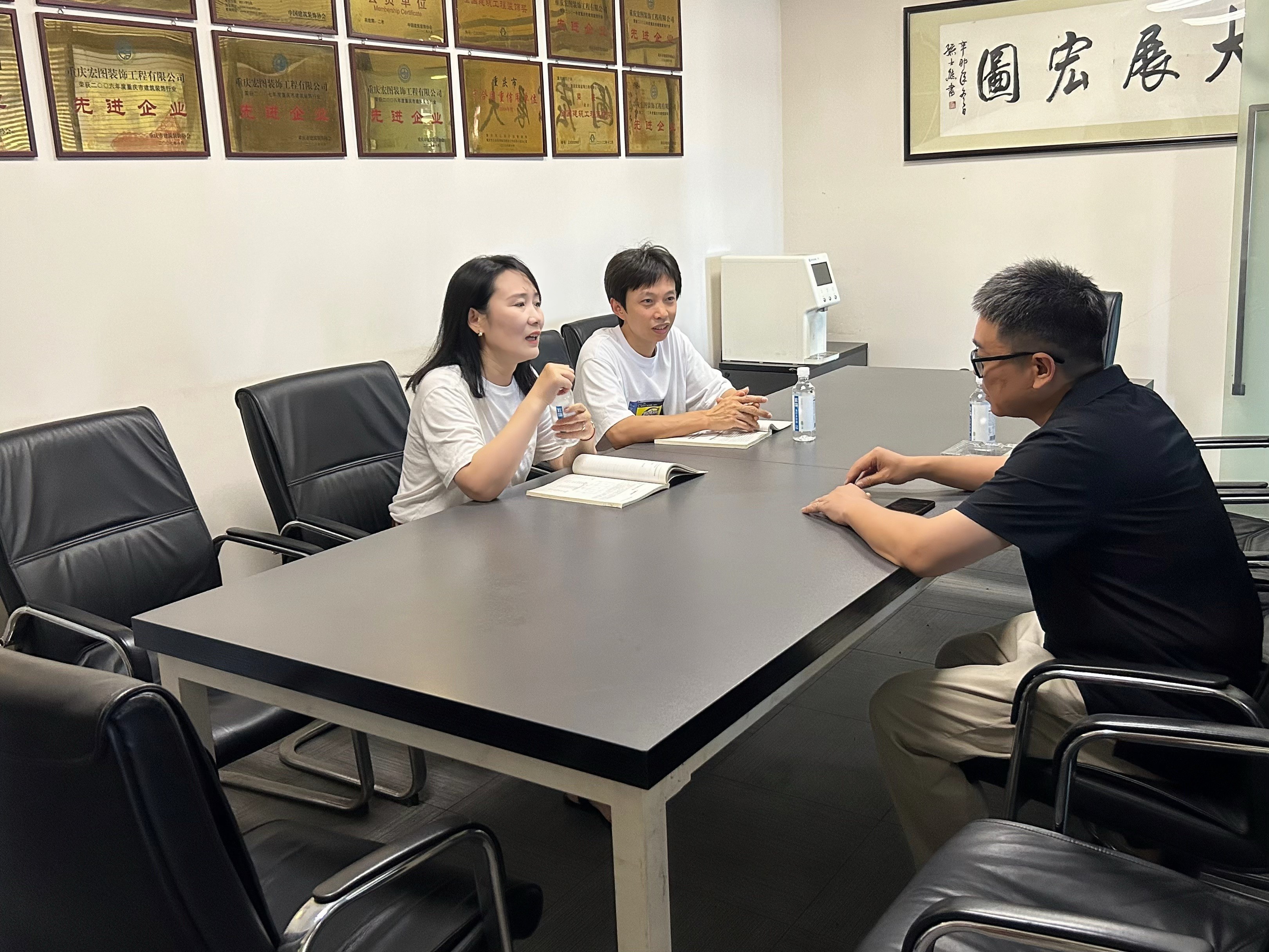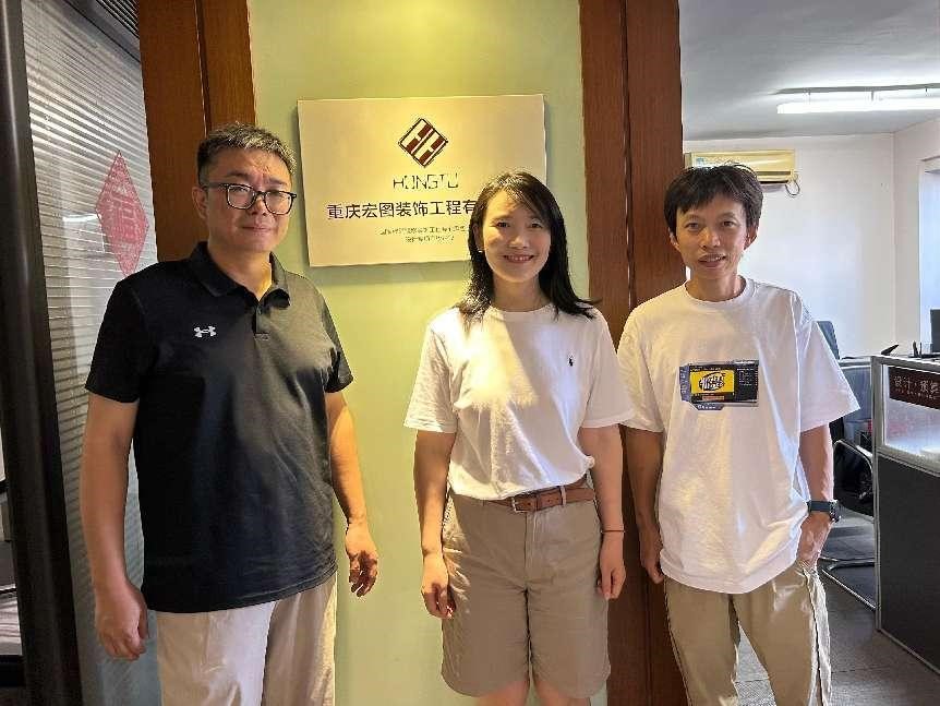 本网讯(文/图 设计系刘涛)8月2日上午,数字艺术学院设计系艺术与科技专业带头人刘涛教授,专业教师彭赟老师一行赴重庆市宏图装饰工程有限公司进行走访交流。