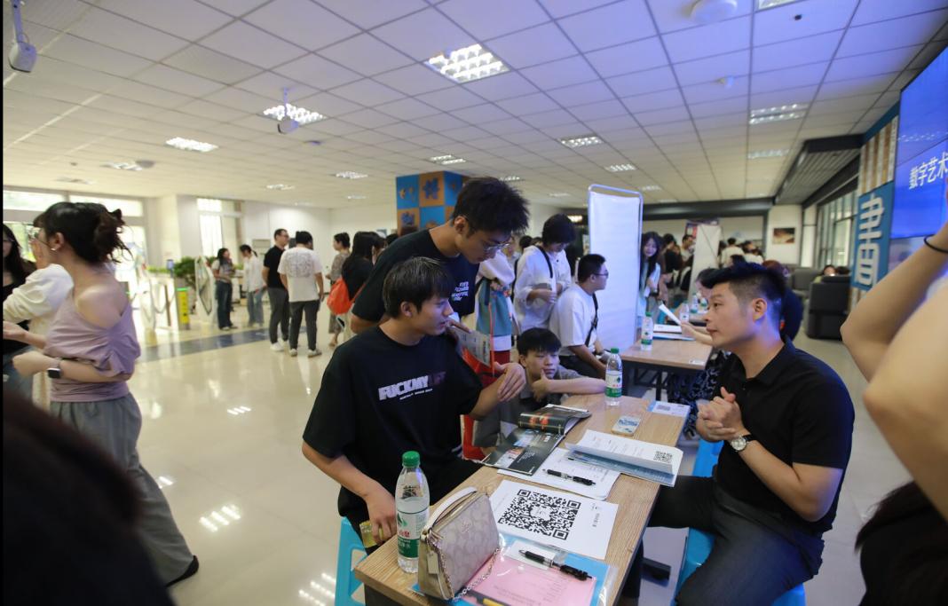 本网讯(文/陈银伟 图/岳旭鹏)9月25日下午,数字艺术学院在第五会议室和图书馆大厅举办了第三届校企合作协同育人交流会暨2025届毕业生实习就业双选会。此次活动吸引了来自重庆及周边地区的34家行业头部企业参与,共为学院376名即将毕业的学子提供了388个对口的就业岗位。