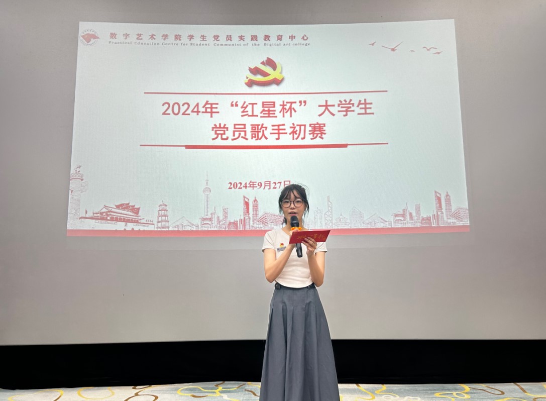 本网讯(文/图 李毅)10月16日,数字艺术学院党总支在办公楼报告厅开展了2024“红星杯”大学生党员歌手大赛初赛。本次活动由学院学生党员实践教育分中心精心承办,旨在通过红色歌曲演唱的形式,弘扬爱国主义精神,展现学生党员的青春风采。分中心实践部负责人陈兴航担任本次比赛的主持人,吸引了众多党性分子积极参与并观看了比赛。