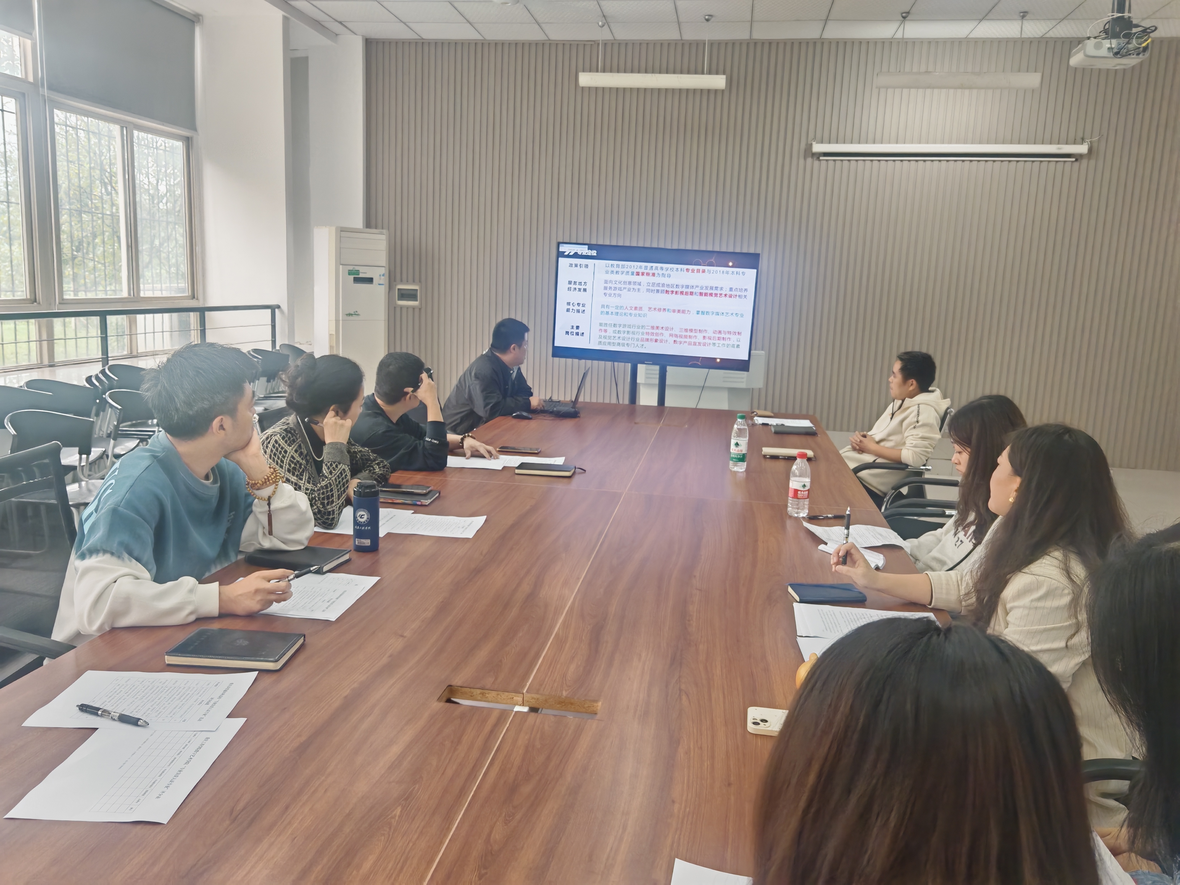 本网讯(图/文 赵正伟)2024年11月15日,数字艺术学院开展了“三说”活动的“说专业”竞赛,旨在通过说专业活动,促进各专业负责人对专业建设的深入思考,明确专业发展定位,优化专业结构与课程体系,提升专业教学质量与社会服务能力。本次活动学院四个专业的负责人参加了竞赛,院长庄涛文、教学副院长弋玮玮以及教务科长、教学督导组成员担任了评委。