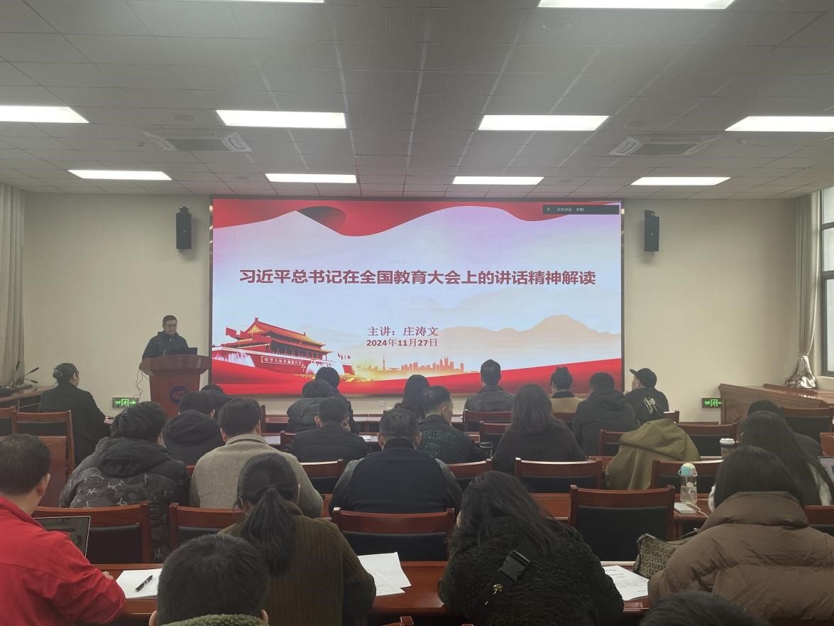 本网讯(文/图 数字艺术学院吴政宏)11月27日,数字艺术学院党总支在第四会议室开展专题党课,学院全体教职工党员积极参与,共同学习党的先进理论与方针政策。本次党课由学院院长、党总支副书记庄涛文主讲,以习近平总书记在全国教育大会上的讲话精神为核心,为全院教职工党员带来了一场思想深刻、内容丰富的教育盛宴。