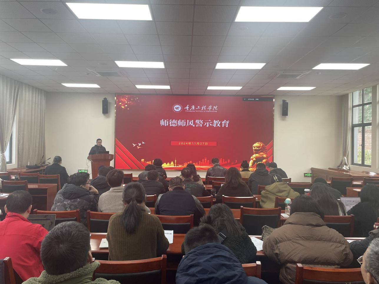 本网讯(文/图 数字艺术学院吴政宏)11月27日,数字艺术学院在第四会议室开展师德师风警示教育活动。本次活动由学院院长庄涛文主讲,旨在进一步加强师德师风建设,提升教职工的职业素养与道德水平,全院教职工均积极参与,共同营造了一个浓厚的学习氛围。