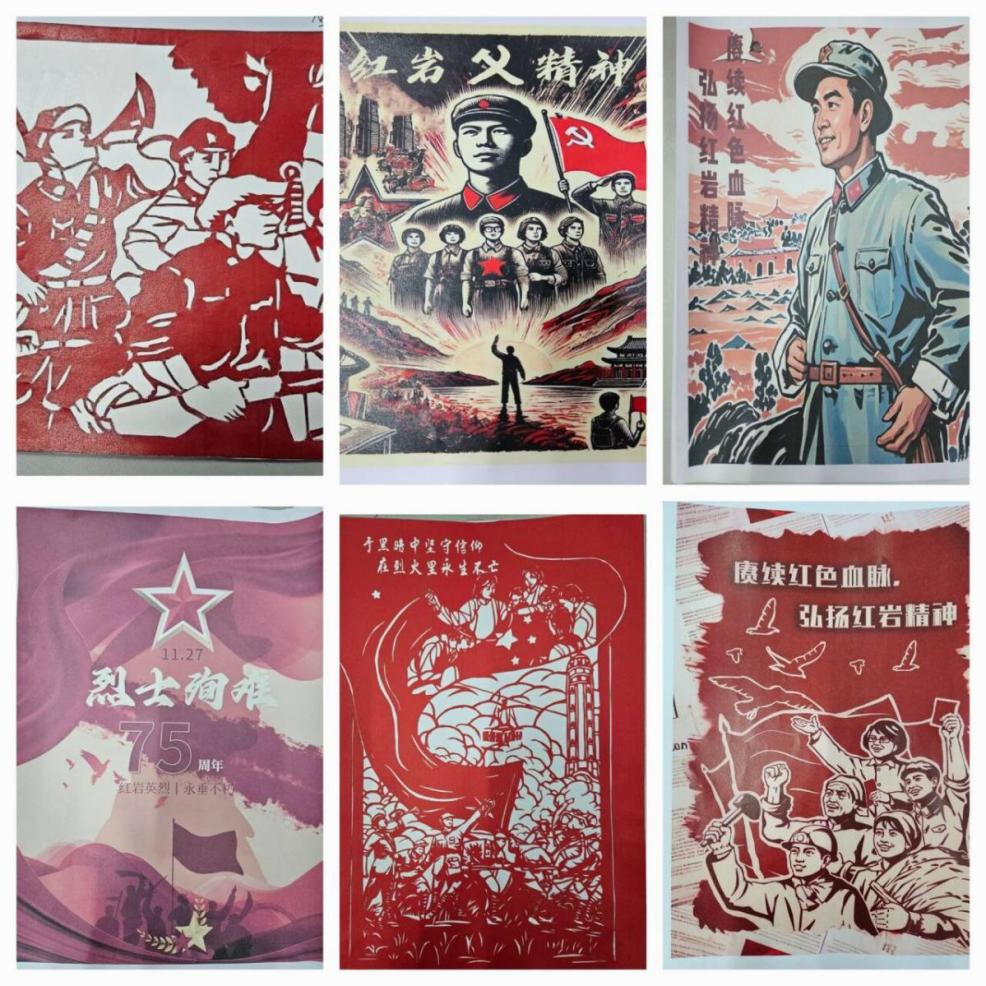 活动期间,同学们积极响应,深入挖掘红色文化资源,巧妙构思,精心创作出一幅幅富有创意和深意的绘画作品。手抄报以其内容丰富、形式多样成为本次活动的亮点之一,同学们通过手抄报回顾了革命历史中的关键事件与英雄人物,同时融入了自己对红岩精神的理解与感悟,展现了新时代青年的独特视角。漫画作品则以生动幽默的笔触,将革命故事娓娓道来,让历史人物跃然纸上。这些作品不仅接地气,更引人深思,让红色文化在轻松愉快的氛围中得以传承和弘扬。而海报设计则更加注重视觉冲击力与艺术美感,同学们将红岩精神的精髓与现代审美相结合,创作出了一幅幅令人眼前一亮的艺术作品。