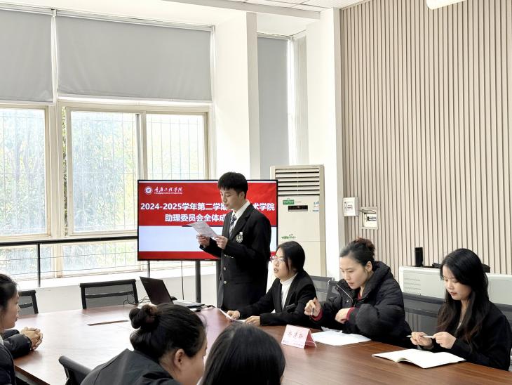 会议伊始,助理委员会负责人陈永慧对过去一学期的工作进行了全面复盘。她详细阐述了团队在上学期工作中所取得的显著成果,诸如在各类活动组织、日常行政协助等方面展现出的高效执行力与团队协作精神。助理团指导教师杨道珍老师在会议最后进行总结发言。杨老师高度肯定了助理团过往的努力与付出,对新学期工作提出了更高的目标与期望。她强调,在未来的工作中,各部门需进一步加强沟通协作,优化工作流程,提升服务意识,确保各项工作能够更加协调、高效地推进,切实为学院师生提供更优质的服务。
