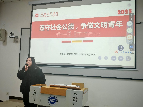 班会前,辅导员精心准备班会PPT和相关资料。班会期间,覃薇老师深入剖析当下严峻的就业形势,以清晰的思路和丰富的案例,引导学生合理制定求职规划。张芬源老师以别开生面的趣味测试开场,巧妙解读文明礼貌、助人为乐、爱护公物、保护环境、遵纪守法这五项公德要求。张老师紧密结合寝室文明建设,倡导同学们将公德意识融入日常生活点滴,身体力行地践行,极大地激发了同学们争做公德传播者的使命感与责任感。杨道珍老师将主题班会场地转移至运动场,在体委有条不紊的带领下,同学们进行充分热身,确保活动安全有序开展。随后,以小组协作的形式学习兔子舞,全体同学活力满满地参与其中,尽情展示自我。