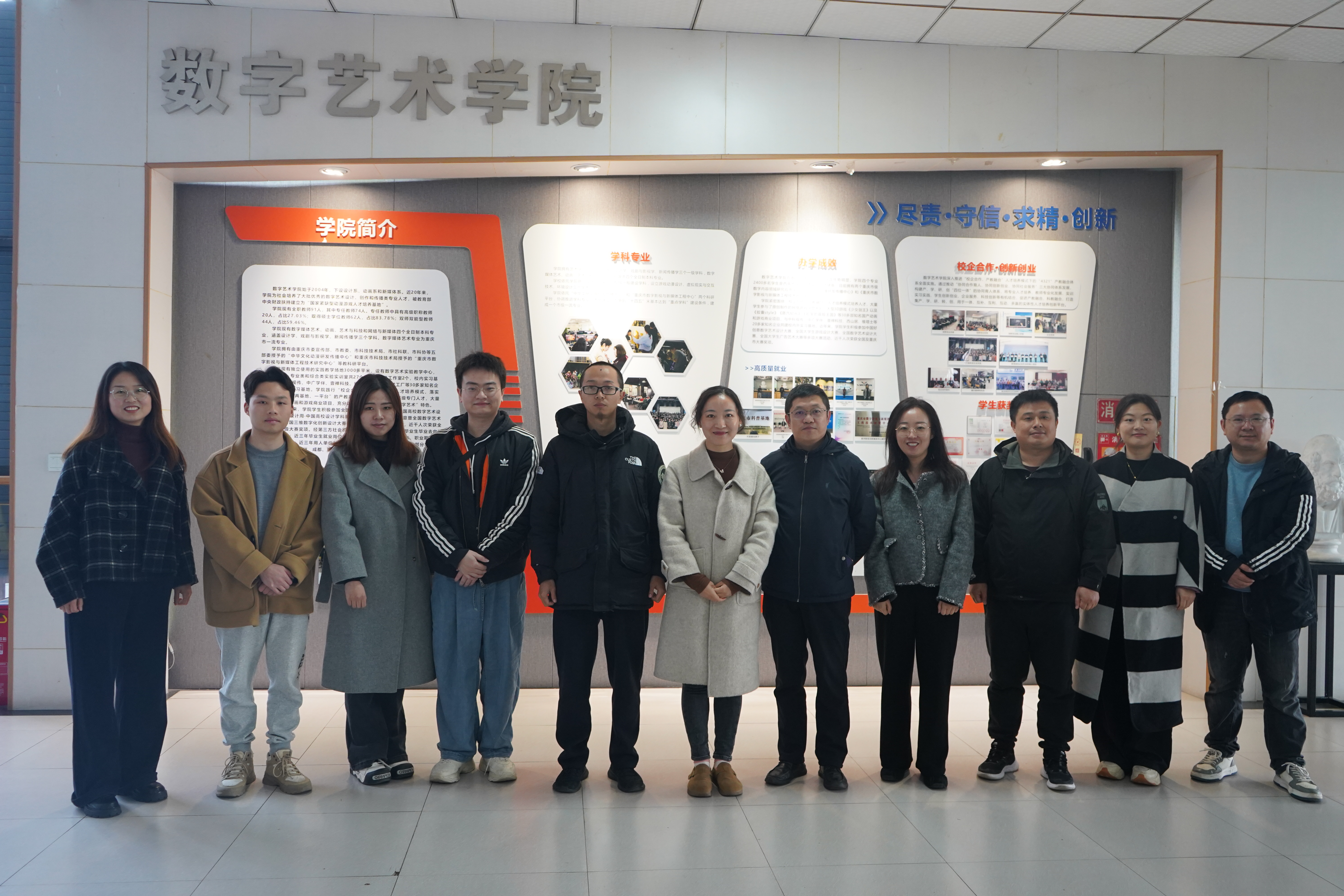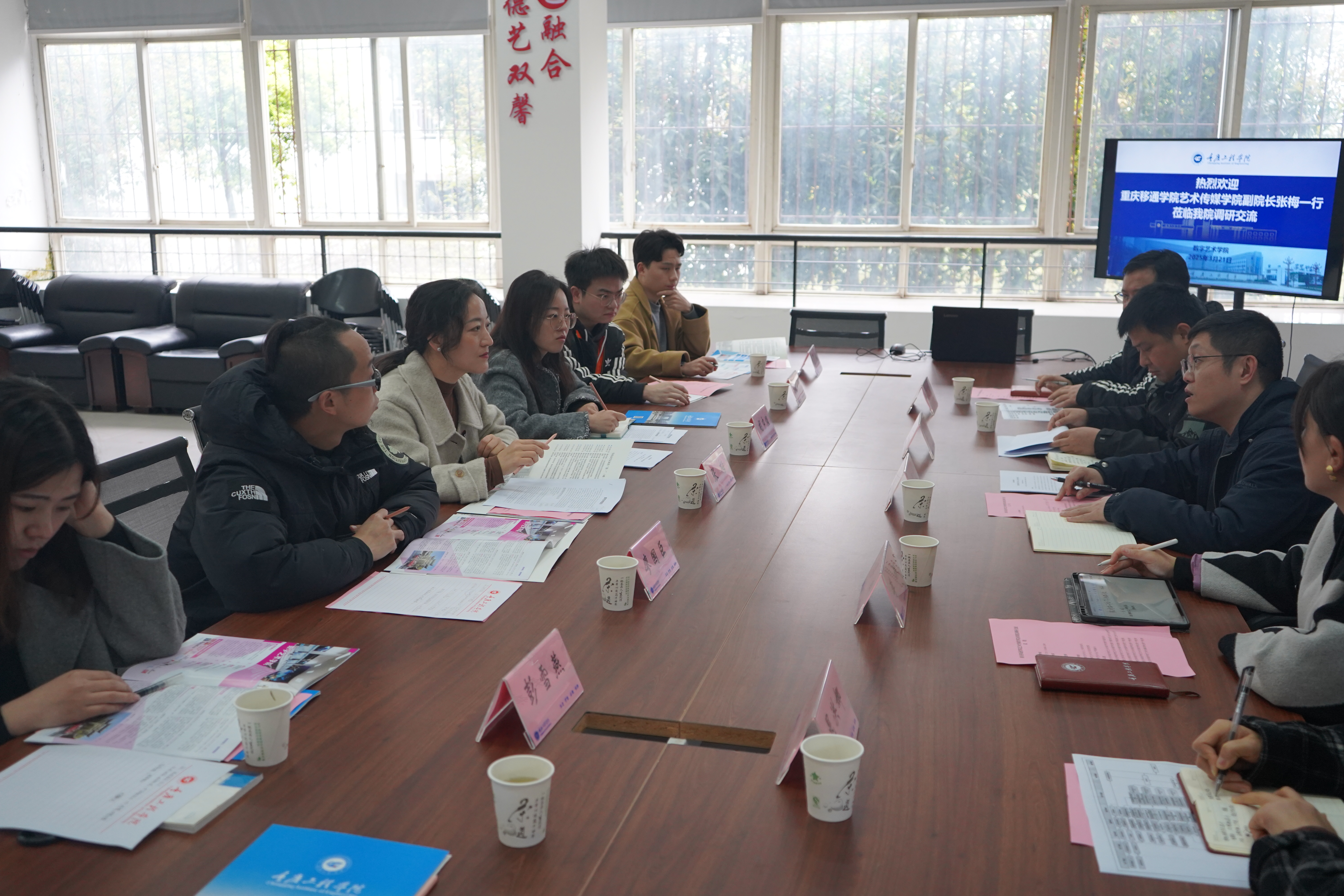 本网讯(文/图 影视动画系李旗)3月21日上午,我校以“开放共享、引领发展”为主题,接待了重庆移通学院艺术传媒学院副院长张梅一行8人到访调研,数字艺术学院院长庄涛文携领导班子及骨干教师代表参会。在5207会议室,双方围绕专业建设、实验室运行、产教融合及工作室教学模式等展开深度研讨,并实地考察我院特色实验室与创作中心。