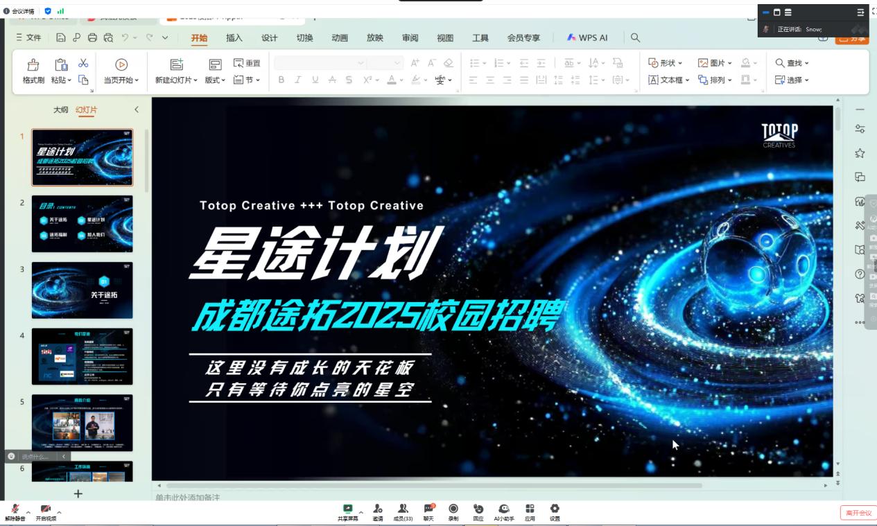 本网讯(文/图 就业科周杨)3月7日18:30,我院与成都途拓数字科技有限公司联合举办2025届毕业生线上专场招聘会,开启"云端引才"新模式。作为深耕数字创意领域十二载的知名企业,途拓科技此次开放UI设计、三维建模、影视后期等核心岗位,与我院数字媒体艺术、动画等专业契合度高达92%,充分释放"专业对口+岗位适配"的叠加效应。吸引40名毕业生深度参与。