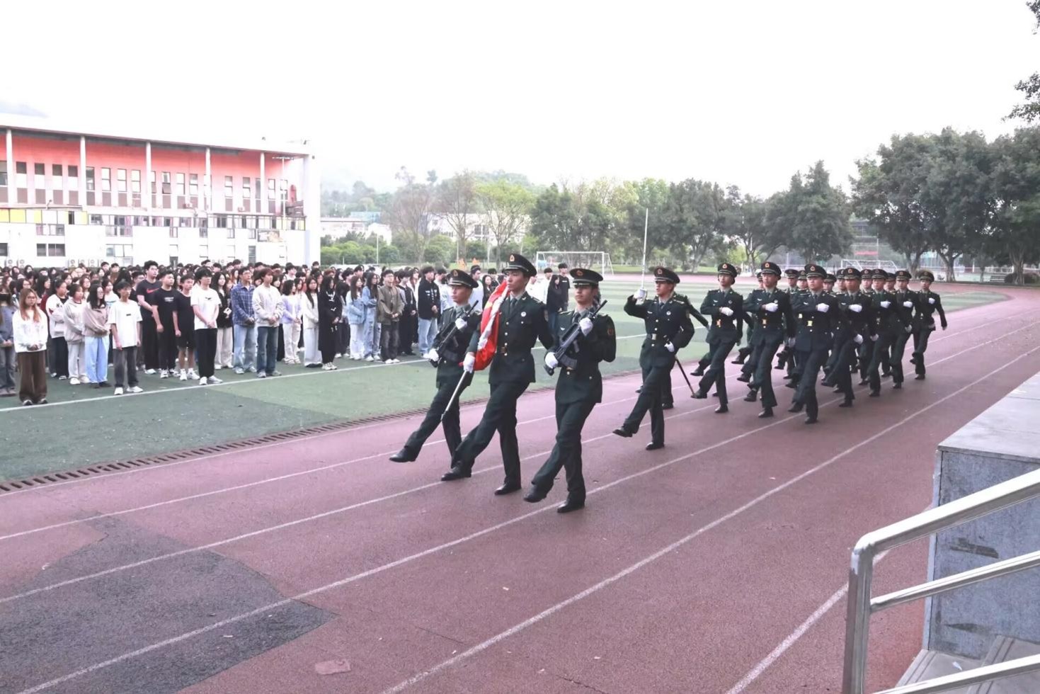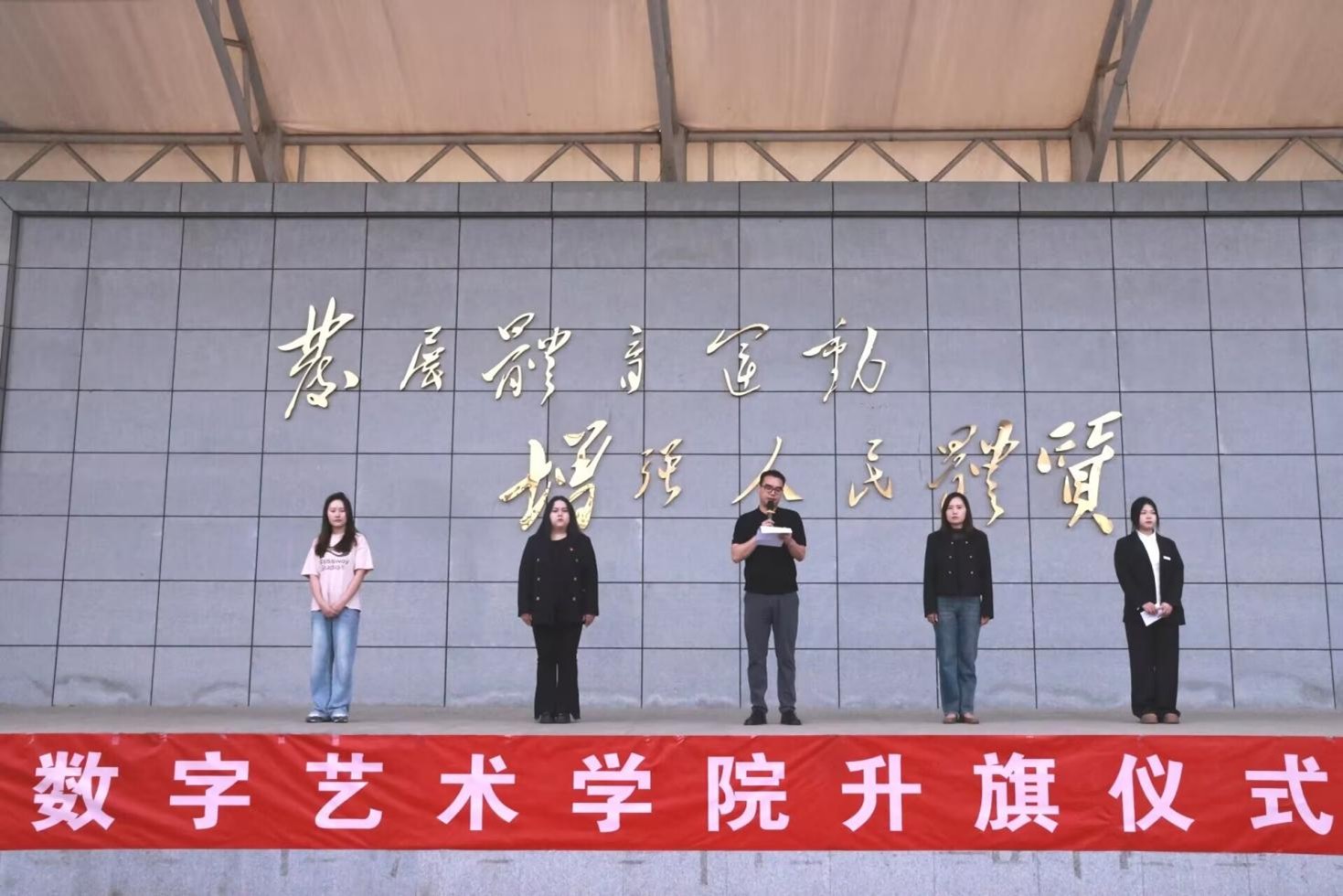 本网讯(文/图 学生科)为弘扬爱国主义精神,激发师生新学期的学习热情,4月14日,数字艺术学院开展“春光为序 华章再起”升旗仪式。副院长杨林林出席活动,23级辅导员及23级全体同学参加。