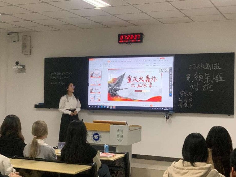 本网讯(文/张芯怡 图/刘璇)4月24日,数字艺术学院数艺学生党支部联合“艺言E语”辅导员工作坊开展了“缅怀先烈,传承抗战精神”宣讲活动,通过图片展示、数据分享,宣讲同学生动地讲述了重庆大轰炸的历史背景、事件经过以及遗址所承载的深刻意义。