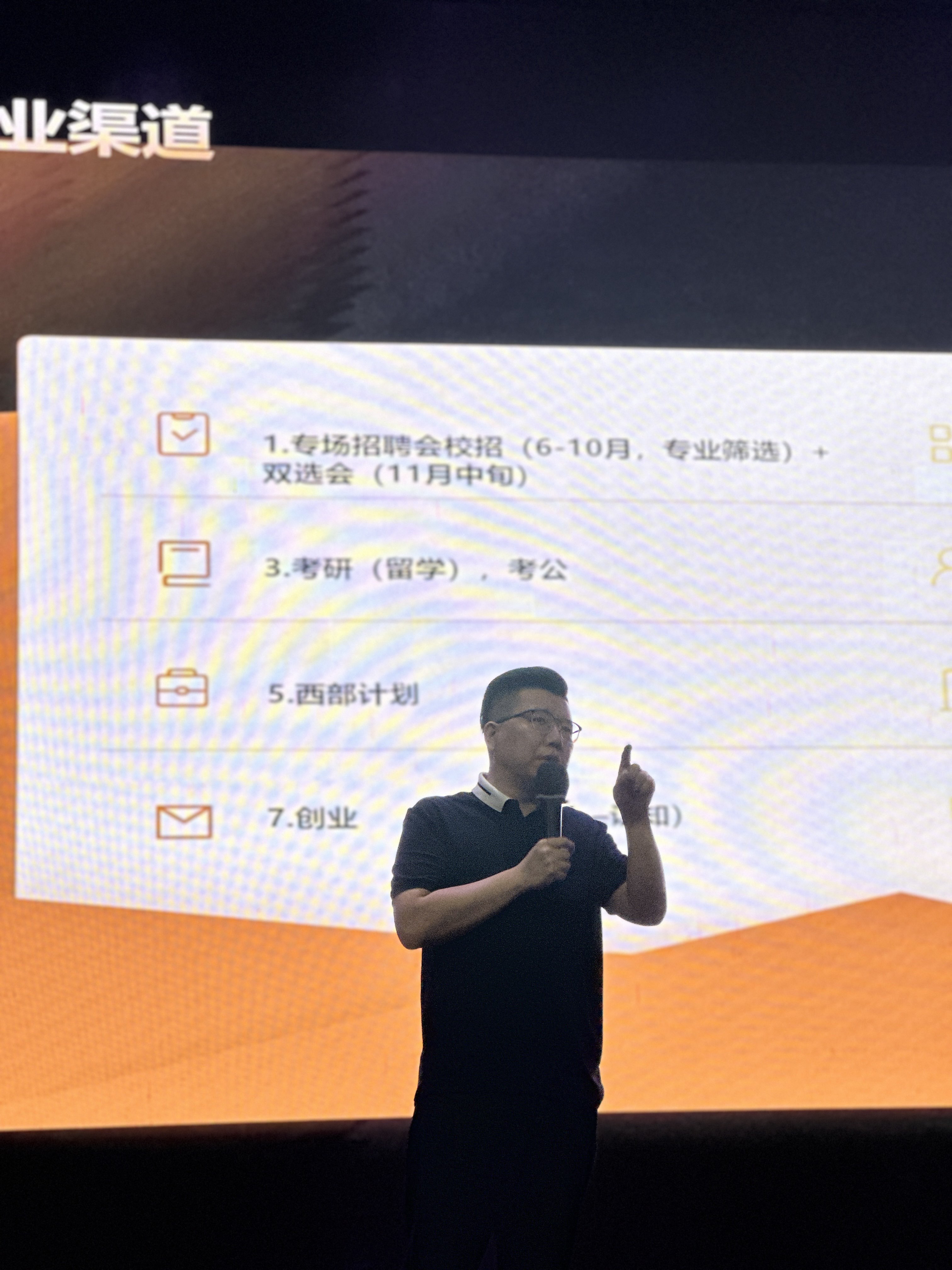周杨老师首先进行了八类就业渠道的具体讲解,这些就业渠道分别包括了对选择专业就业和考公考研同学的不同指导。接着围绕“公司如何选择”这一主题,深入剖析了选择大公司还是小公司、本地就业还是外地就业、高薪还是发展前景等关键问题,引导学生结合自身兴趣、专业和职业规划做出明智选择。同时,周杨老师还详细介绍了多种就业渠道,包括专场招聘会、校企合作单位推荐、自主实习等,为各位同学们提供了多元化的求职路径。