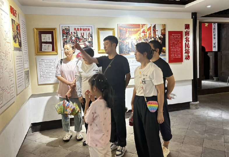 次日上午,党员同志们走进丙安红一军团陈列馆,泛黄的文献、陈旧的武器装备、还原的作战场景,生动再现了红军在丙安古镇休整、扩红、筹粮的史实。党员们沿着青石板路深入古镇,参观红一军团指挥部旧址,透过斑驳的墙壁与简朴的陈设,感受红军将士在艰苦环境中坚守信仰、浴血奋战的革命情怀。