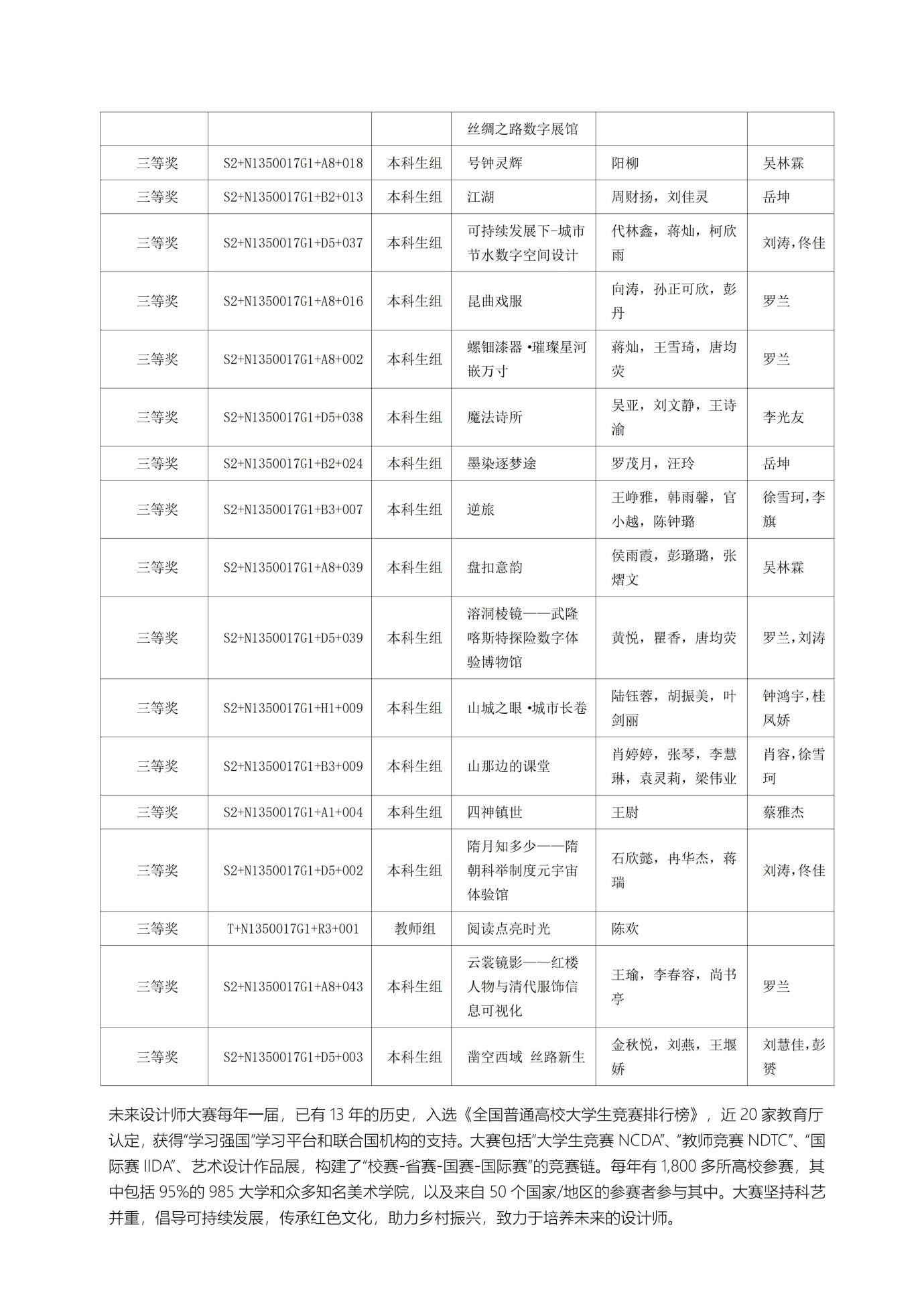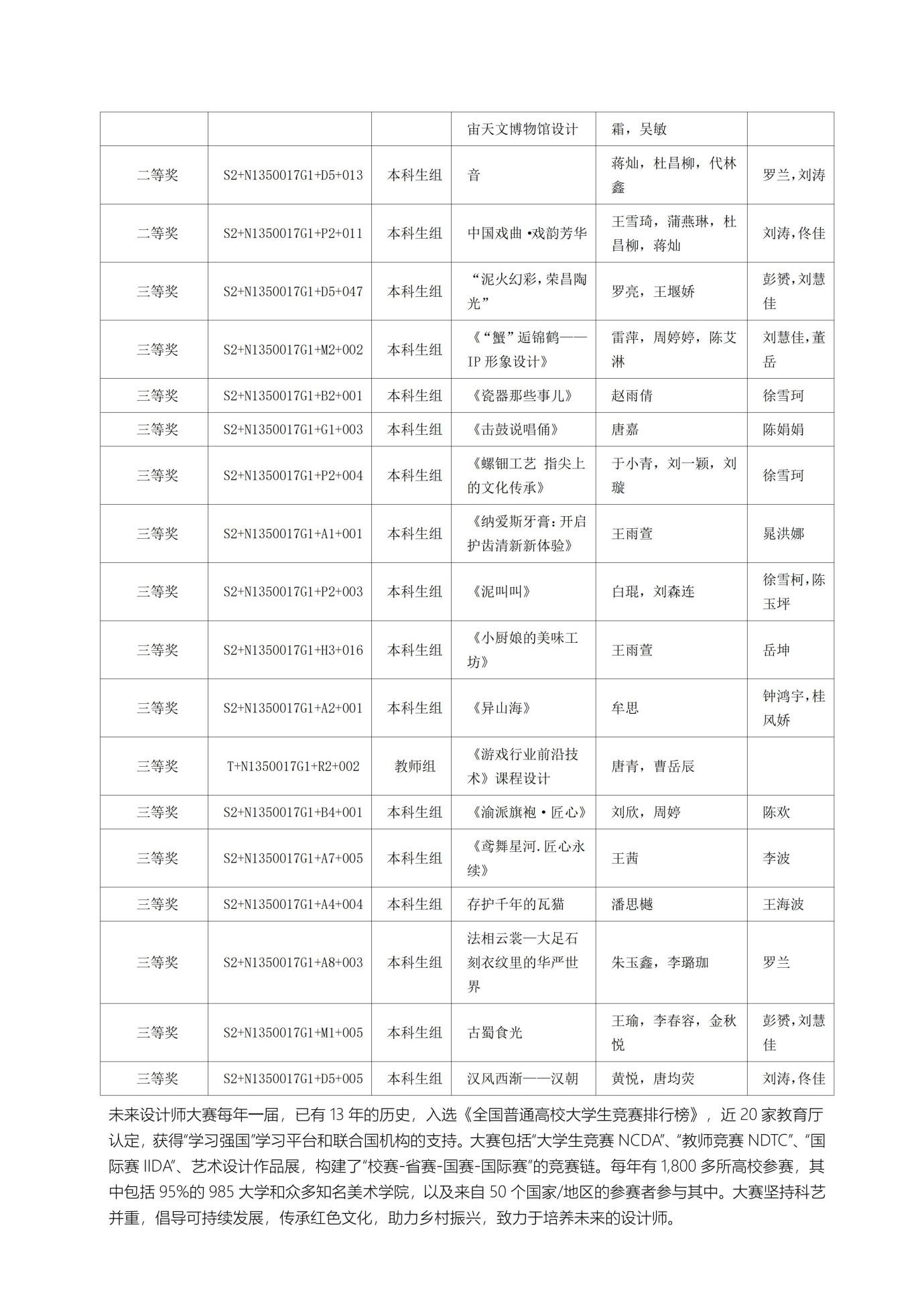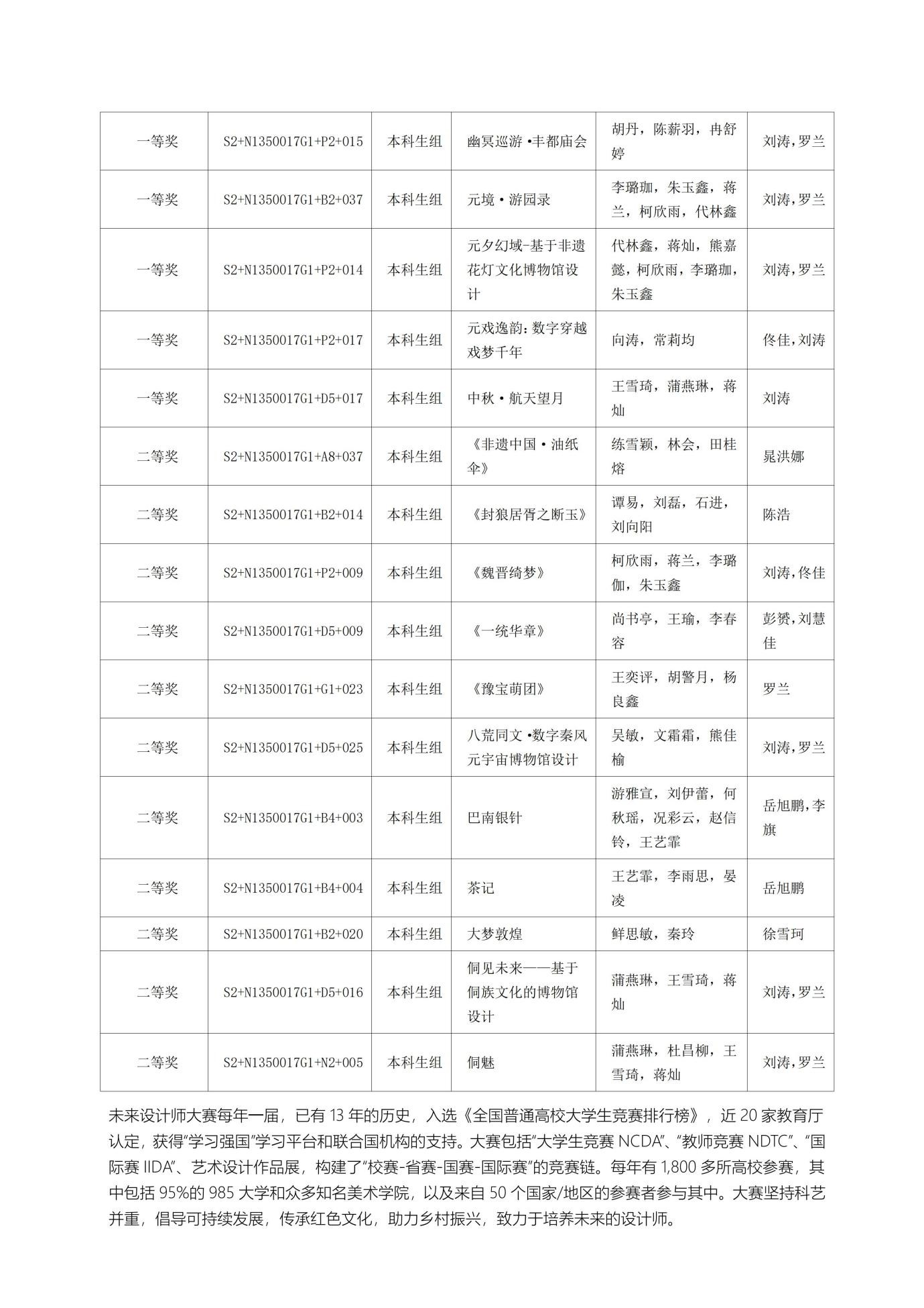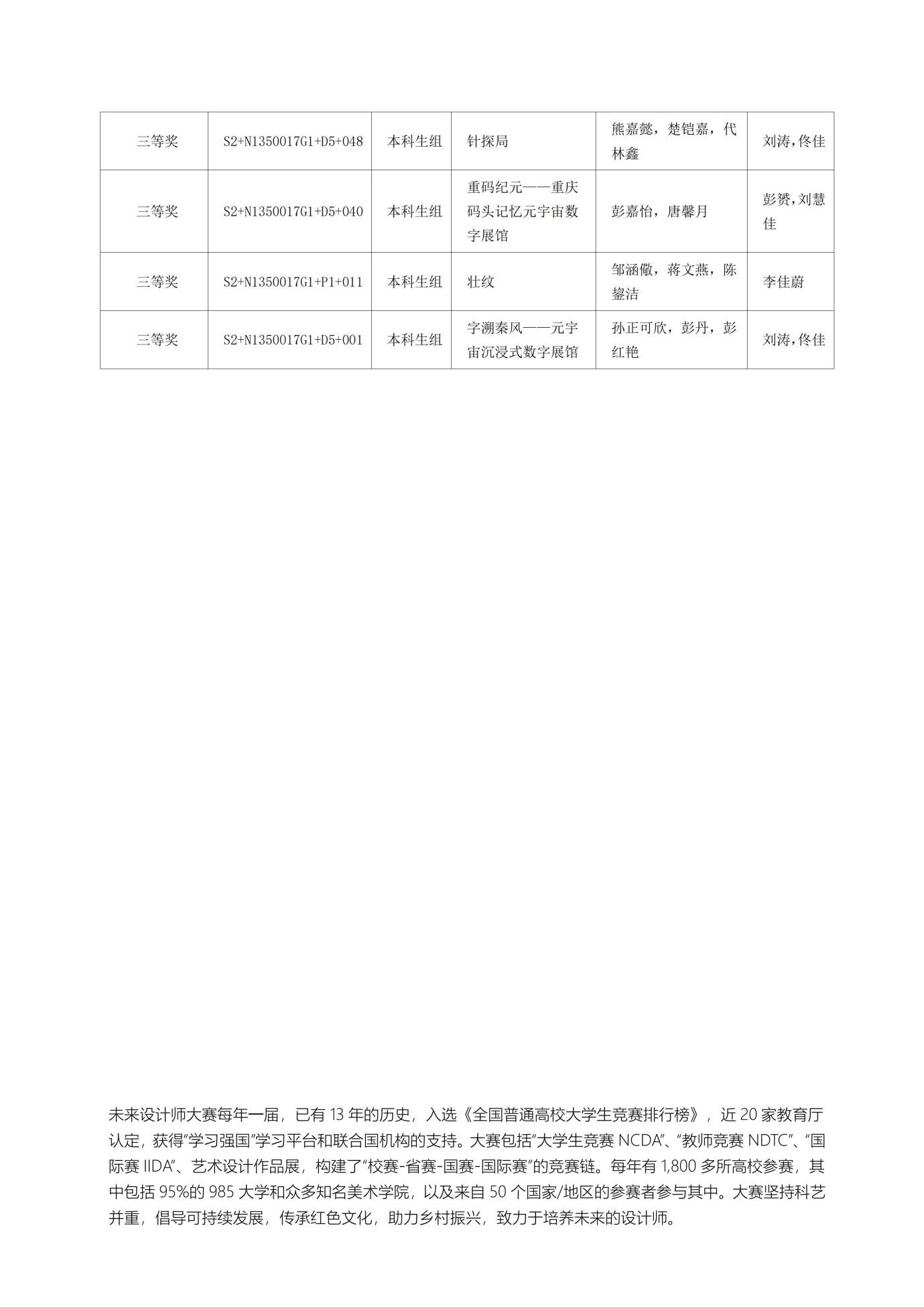 此外,胡丹团队的《幽冥巡游・丰都庙会》、代林鑫团队的《元夕幻域 —— 基于非遗花灯文化博物馆设计》等 4 件作品获全国二等奖;王雪琦团队的《中秋・航天望月》、金秋悦团队的《沸腾元界-舌尖上的文明重启》等5件作品获全国三等奖,覆盖传统文化、航天科普、可持续发展等多元主题,展现了学院学生的创新视野与社会关怀。